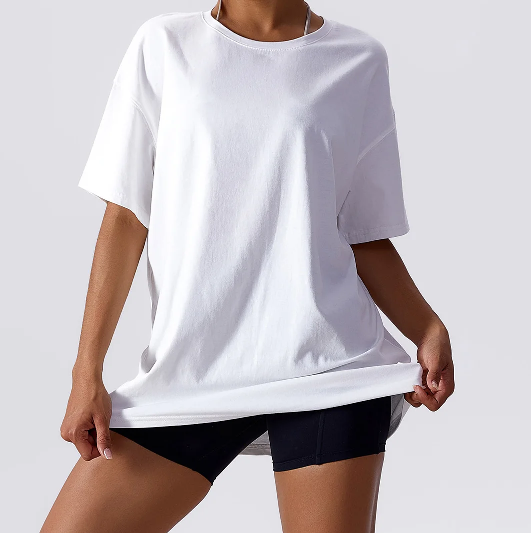 Fashion Fitness Sport White t Shirt Women Cotton Gym t Shirt Workout Active Wear Plus Size Tops