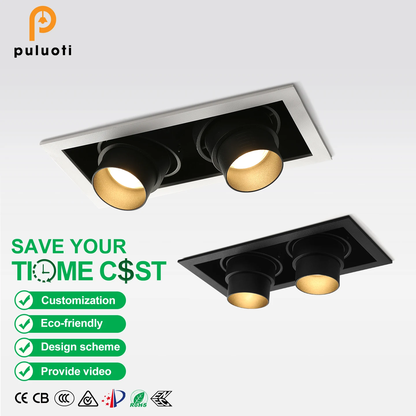 High Quality 20W Indoor LED Spotlight White 15-60° Adjustable Square Ceiling Recessed Energy Saving for Office Hotel MR16/GU10