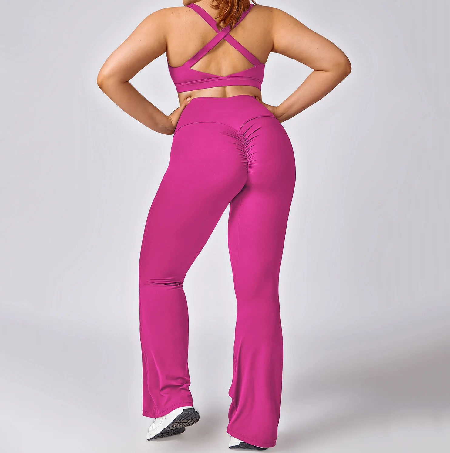 Plus Size Breathable Yoga Set 4 XL Workout Clothing Flare Pants Butt Fitness Women Plus Size Yoga Wear Fitness Sets