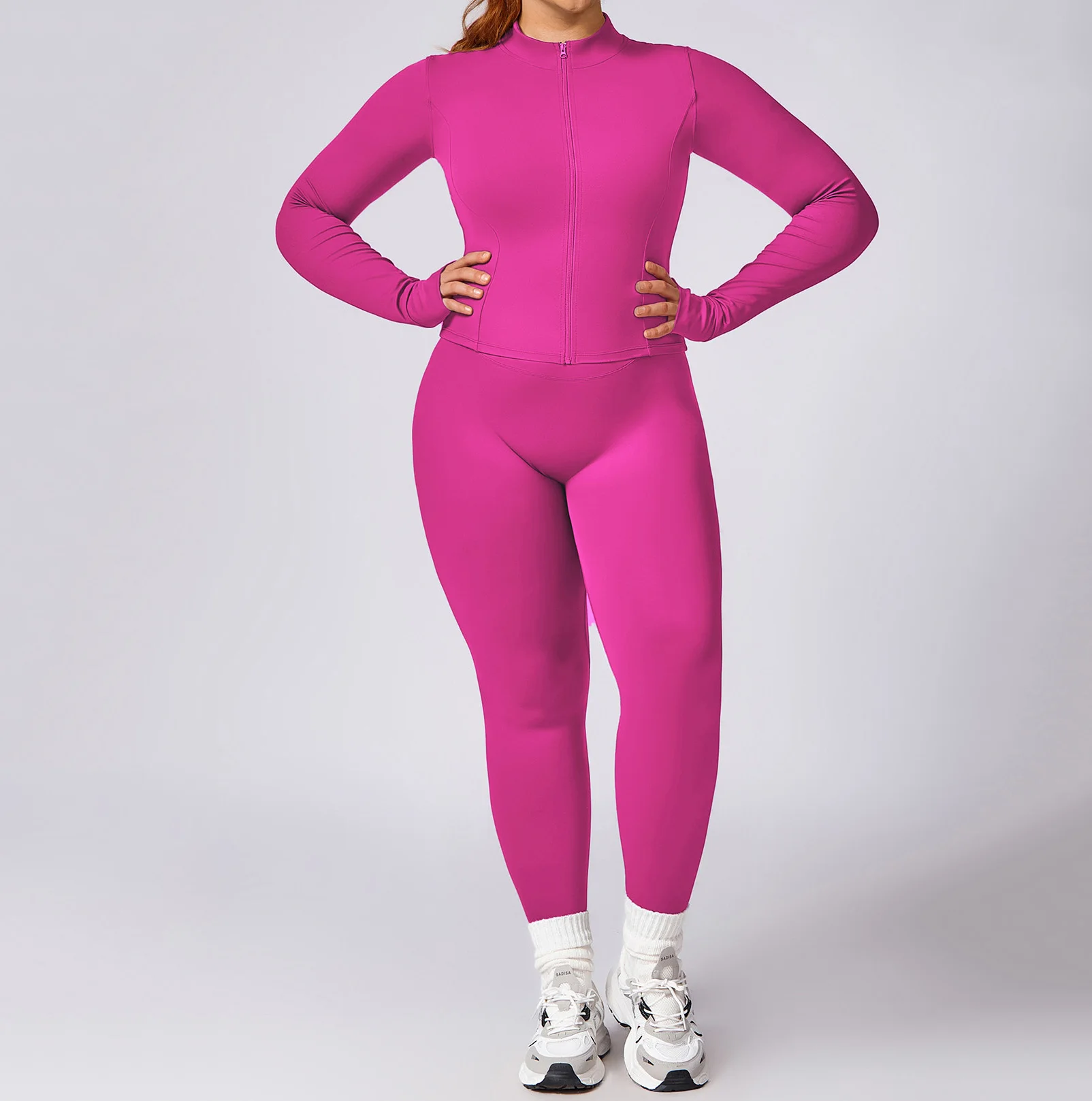 Plus Size Women Wrokout Outfit Leggings Yoga Suit Activewear Plus Size Long Sleeve Jacket Gym Fitness Sets