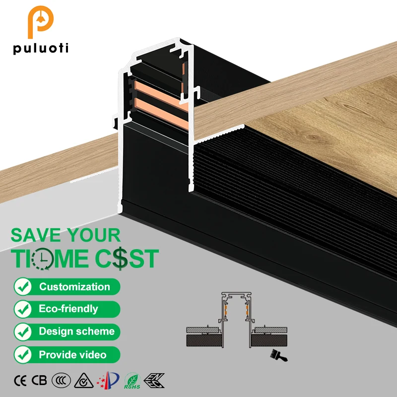 High-quality White Black Recessed Ceiling 2 Line Magnetic Track Light Aluminum Cob Foldable Grille Light for Living Room Shop