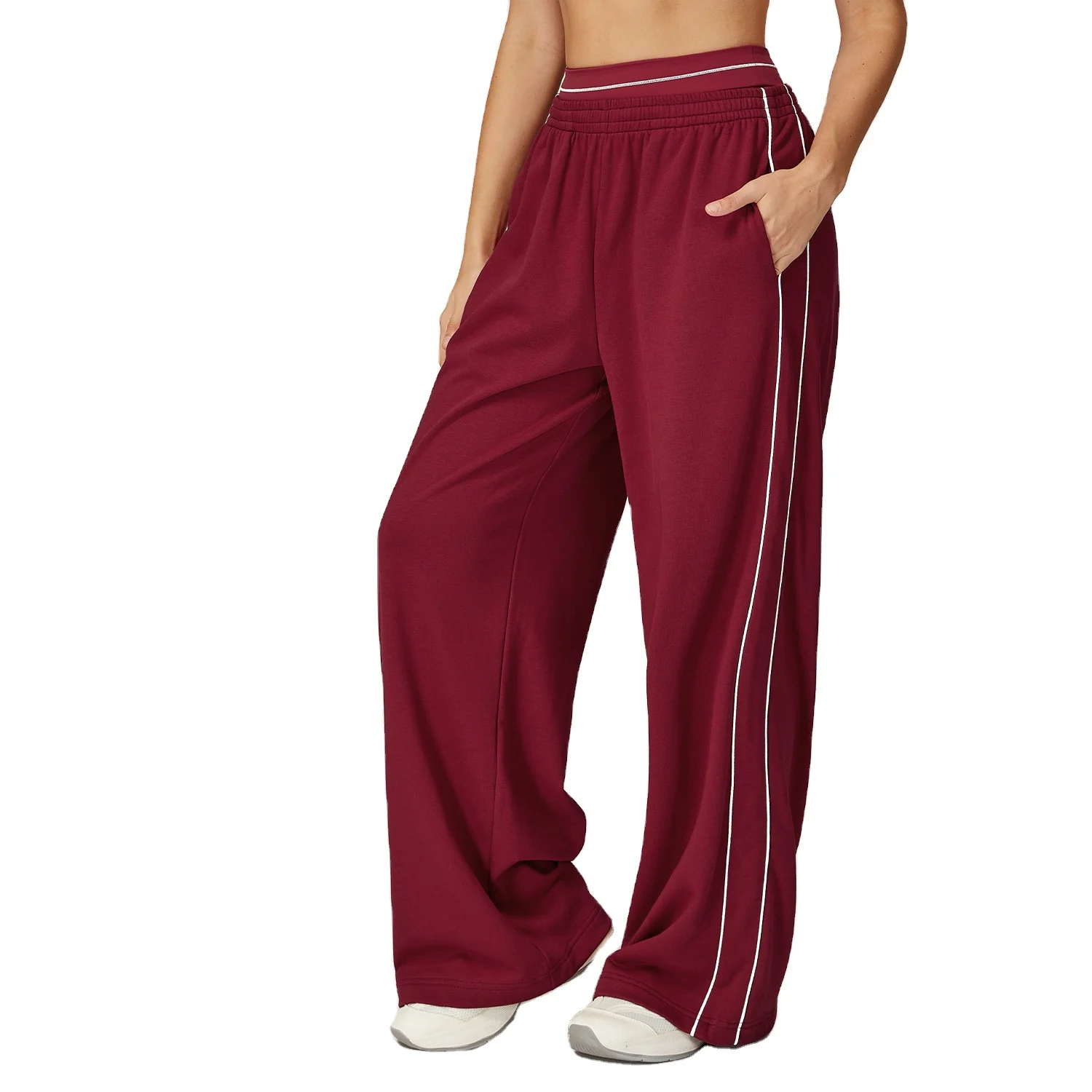 New Arrival Autumn Contrast Sports Pants Loose High Waist Straight Pants Pocket Outdoor Leisure Comfortable Pants