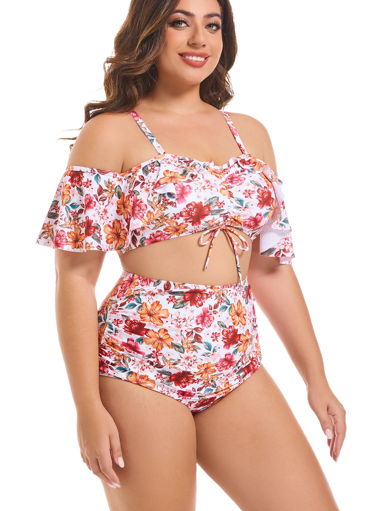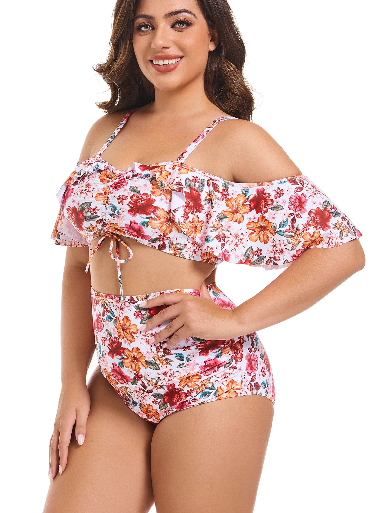 MLY Ruffle Bikini Summer Two Piece Suit Sexy Swimwear Bandage Biquini Triangle Swimsuit Printed Bathsuit