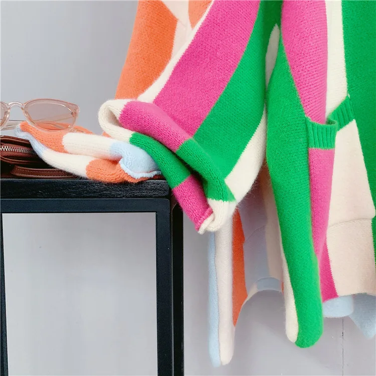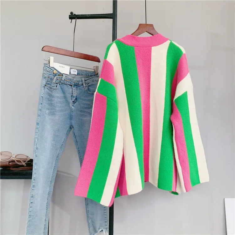Winter Striped Loose Oversize Women's Knit Cardigan