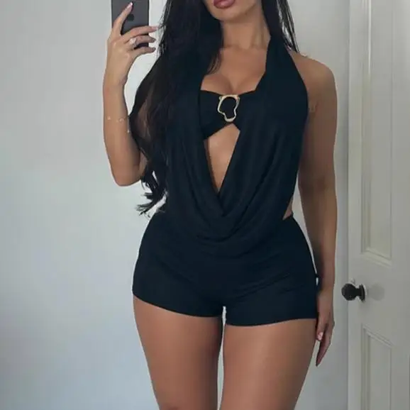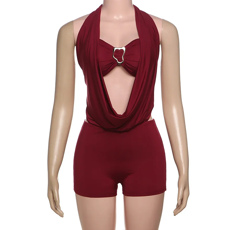 2026 Summer New Women's Sexy Halterneck Deep V-Neck Backless Tie-On Jumpsuit Set
