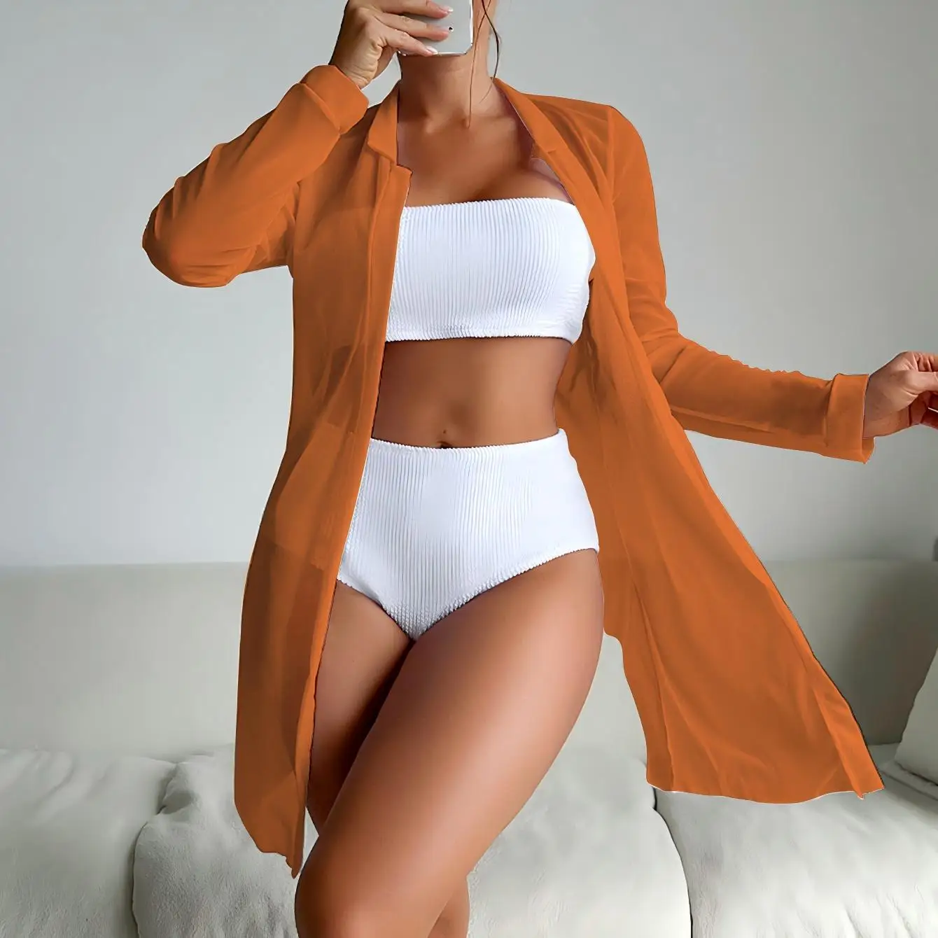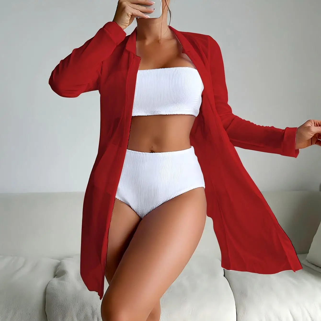 Summer Women's 3-Piece Bandeau Bikini Set with Shirt Spandex/Polyester Quick Dry & Breathable Solid Pattern
