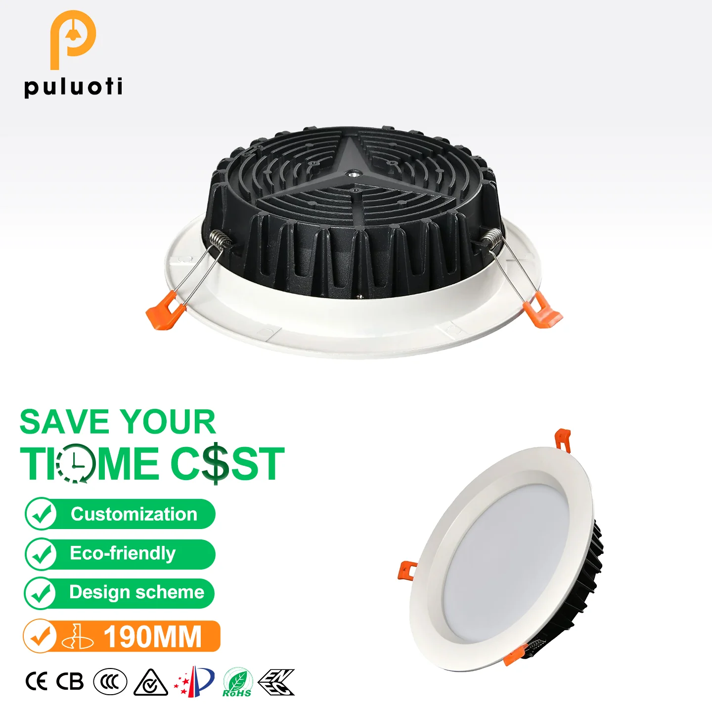 PULUOTI Cutting 190mm40W Indoor Embedded Eye-protecting Downlight Aluminum Recessed LED Full Spectrum High CRI 97 Eye-protecting