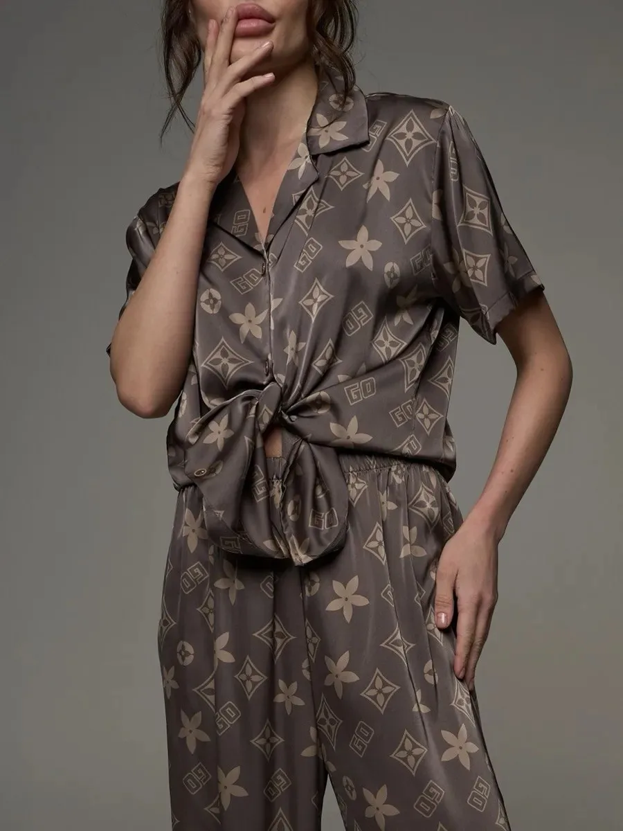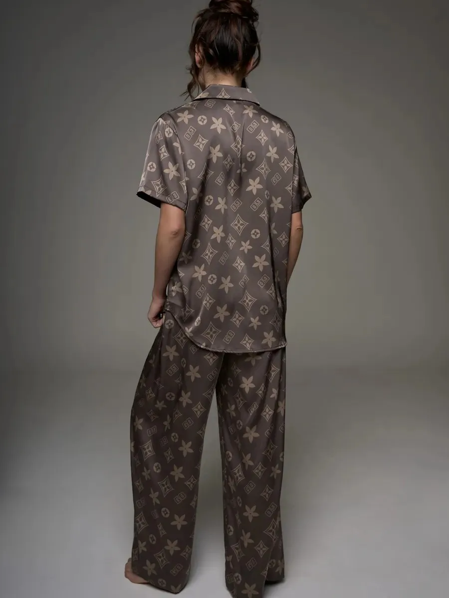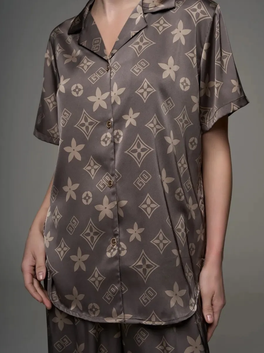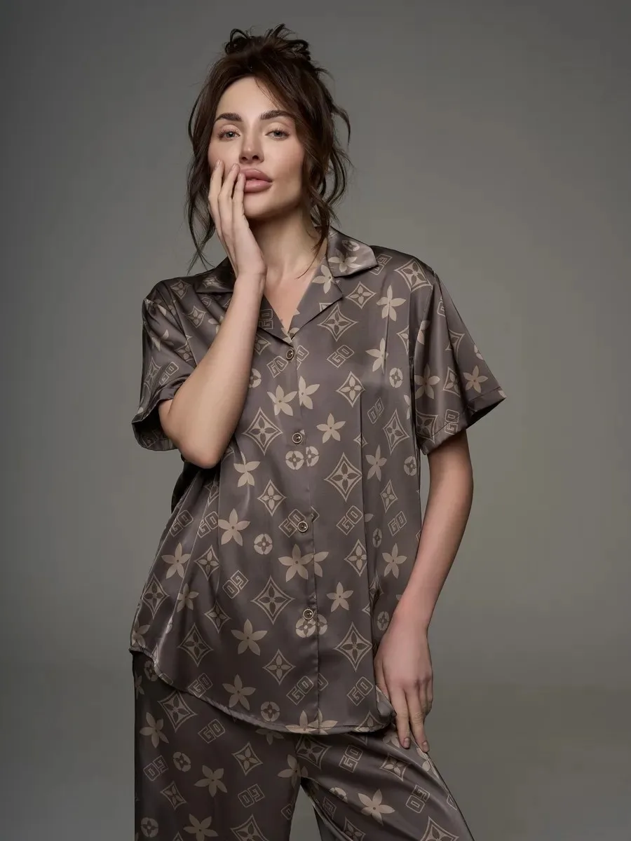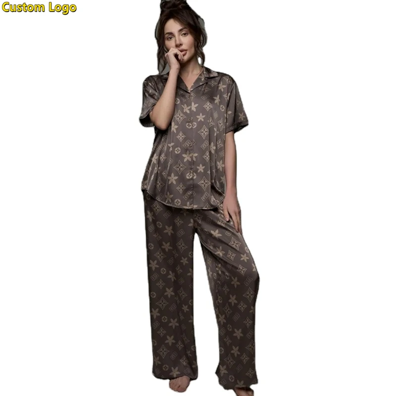Custom Logo Pyjama Luxury Women's Short Sleeve Classic Satin Pajama Soft Silky Sleepwear Comfortable & Stylish Silk Home Wear