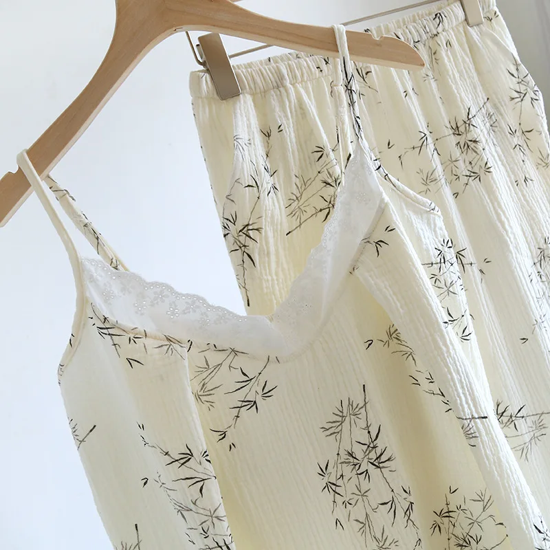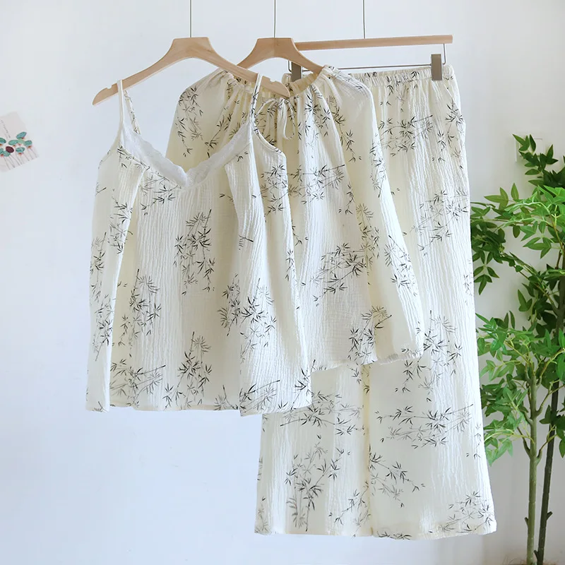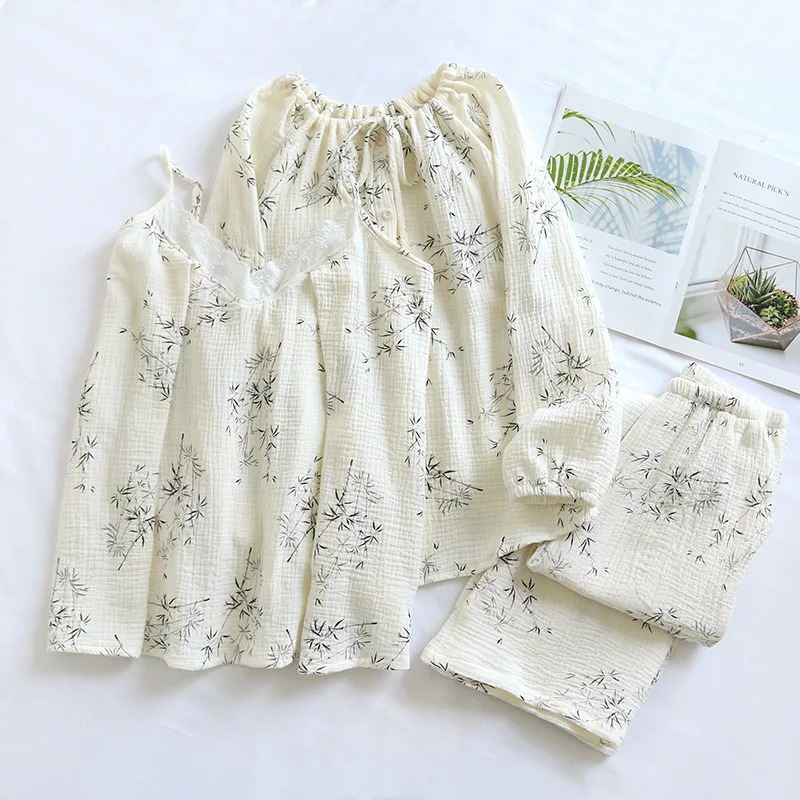 Sleepwear Manufacturers Women's Pajamas 100% Cotton Long Sleeves+Sling+Pants Thin Home Clothing Three Piece Customize Pyjamas