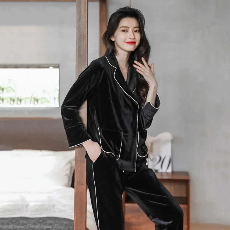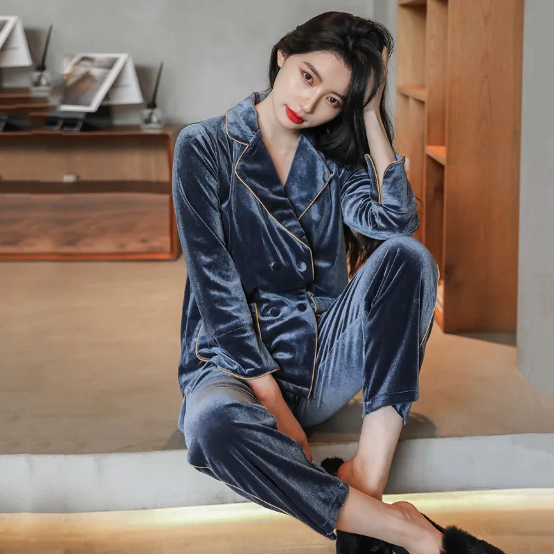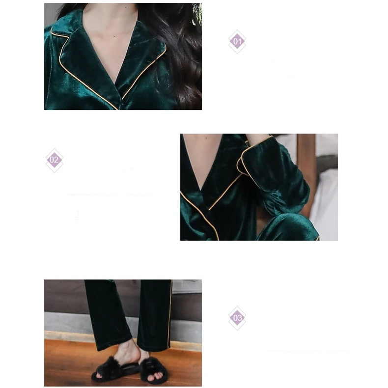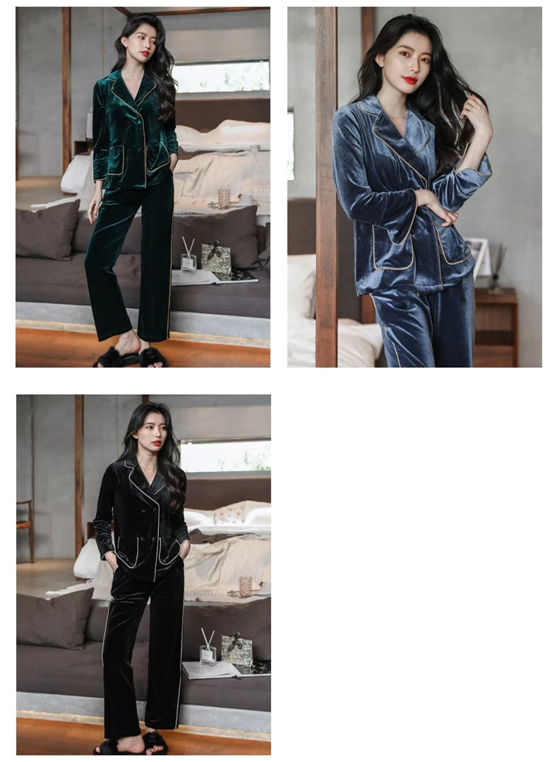 High Quality 2023 Fashion Women Pajamas Set Golden Velvet Sleepwear Luxury Style Homewear V Neck Nightwear Casual Pyjamas Femme