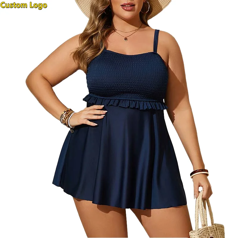 Wholesale Custom Logo Plus Size Swim Dress Sexy Solid Tummy Control Two Piece High Wist Bikini Swimsuit Women Swimwear 2026 NEW