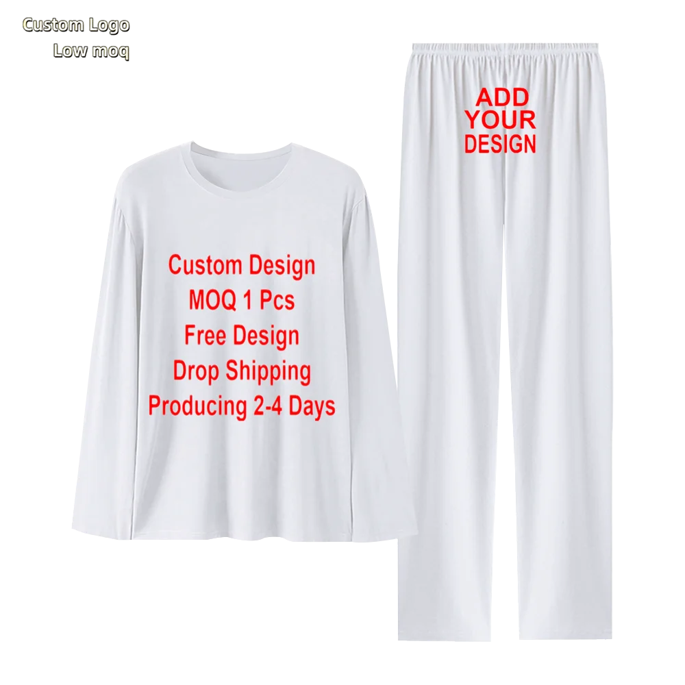 Wholesale Custom Logo Design Your OWN Adult Sleepwear Pyjamas Loungewear Print Pajama for Men Large Nightwear Set Family Clothes