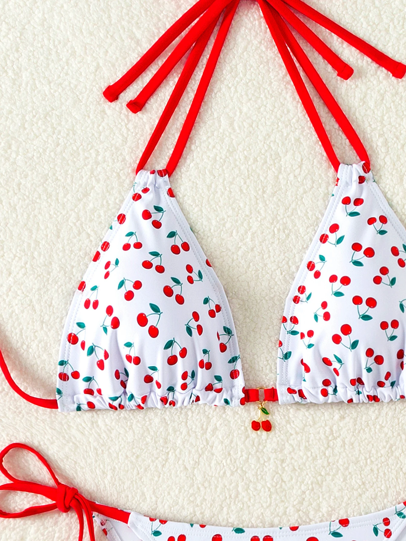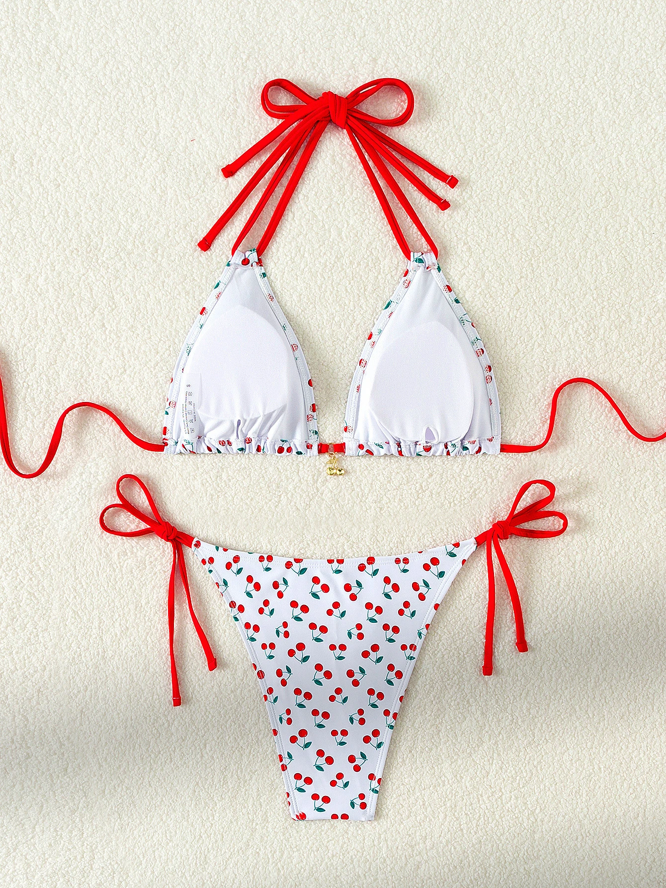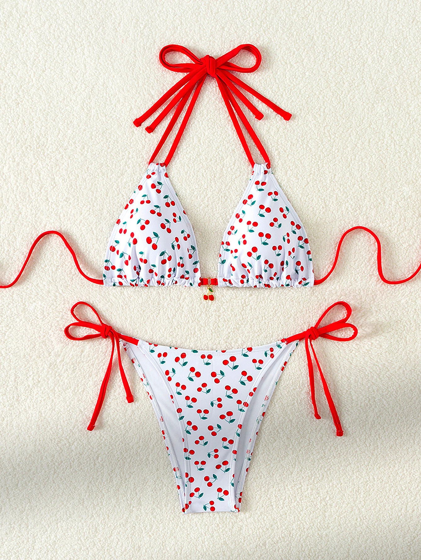 Custom Logo Bikini Cherry Print Swimsuit Bandage Women Bikinis Set Adjustable Bathing Suit Halter OEM ODM Manufacturers Swimwear
