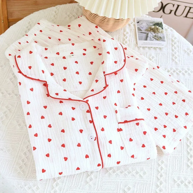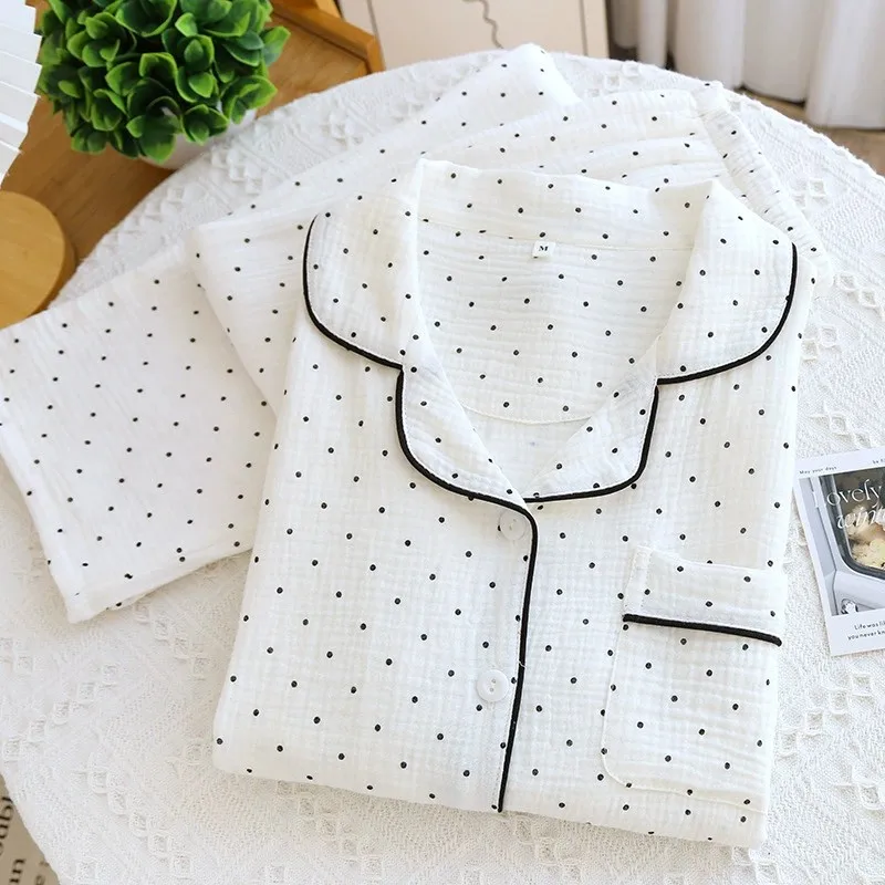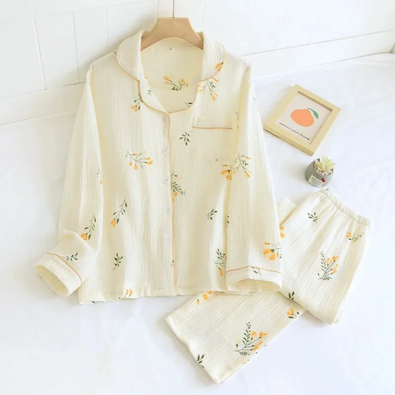 Winter Fall Full Sleeve Homewear Loose 2Pcs Pajama Set 100% Cotton Casual Print Sleeping Home Wear Clothes Wholesale Custom Logo