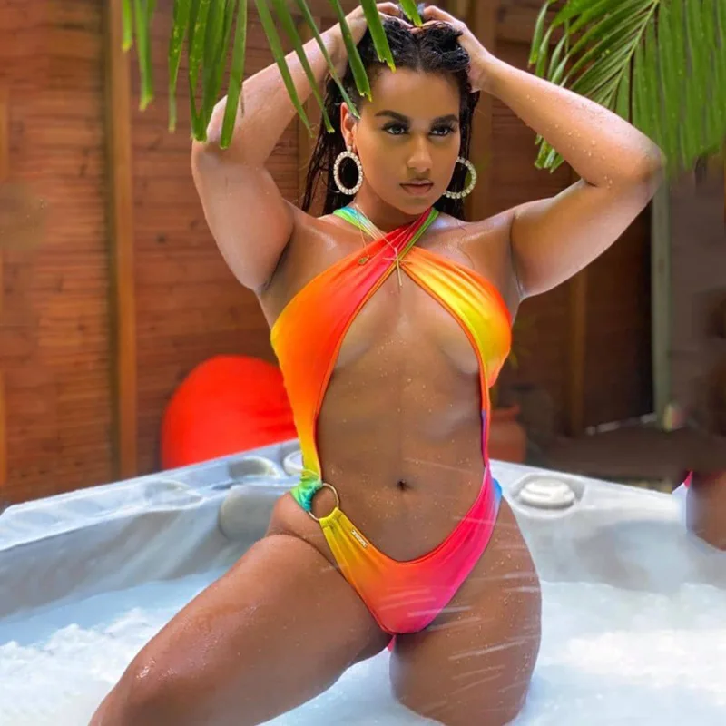 MLY Factory Wholesale Bikini Custom Sexy Bodysuit Jumpsuit Beachwear Backless Striped Print One Piece Swimwear