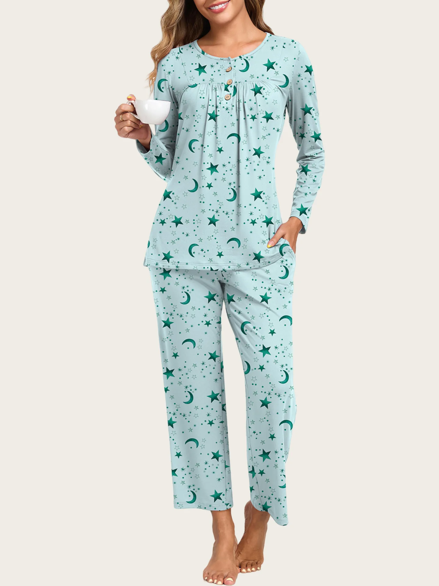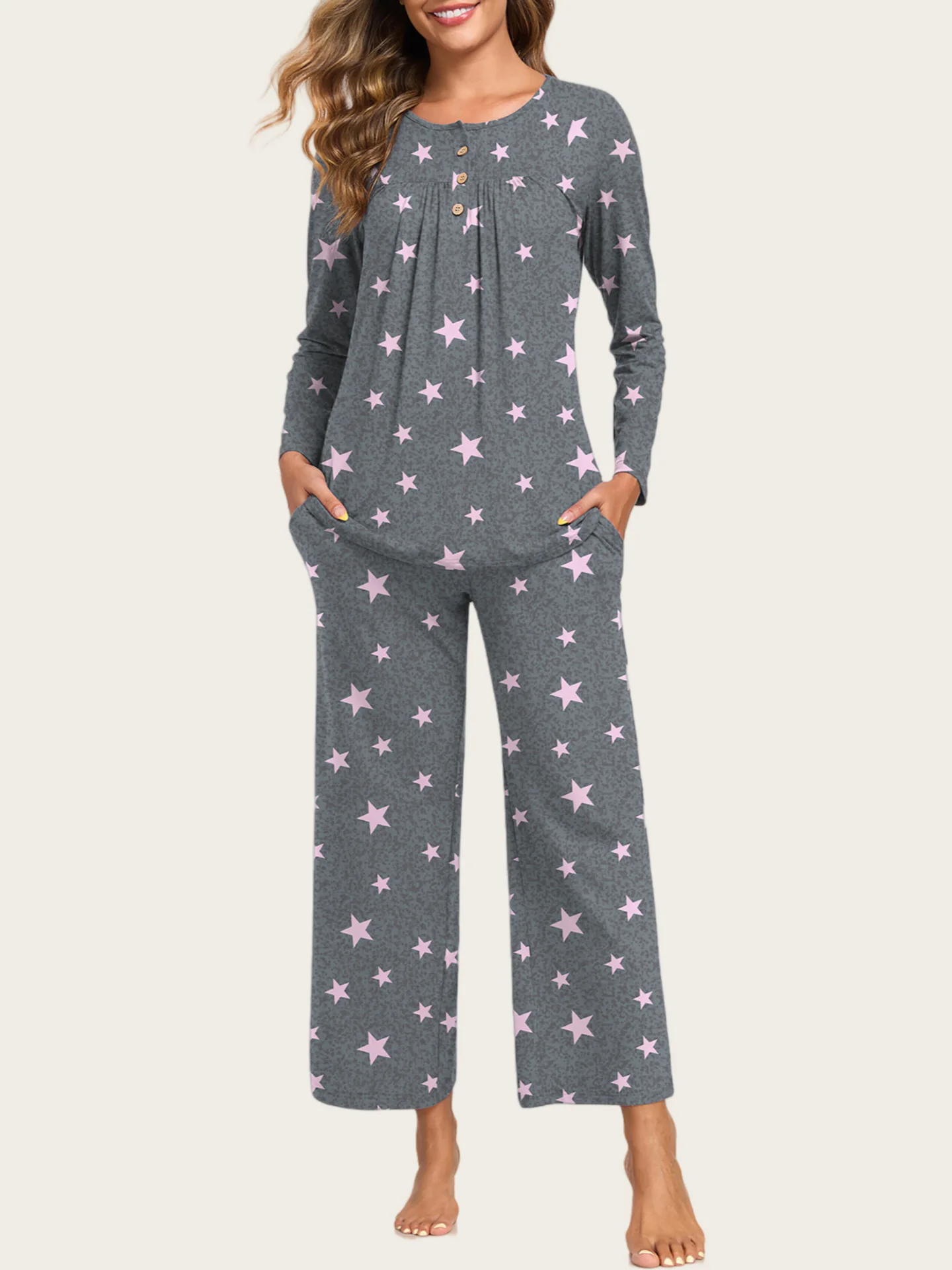 Custom Logo Pyjama Womens Pajama Sets Long Sleeve Pajamas for Women Sets 2 Piece Lounge Soft Pj Sets Fall Sleepwear with Pockets
