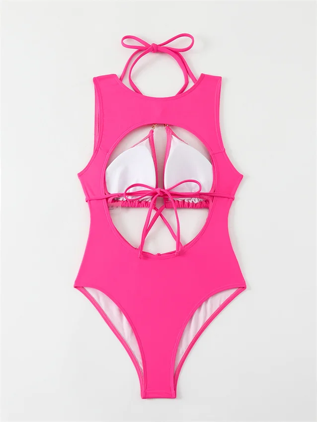 New One Piece Beach Wear Solid Color Women'S Sexy Swimsuit