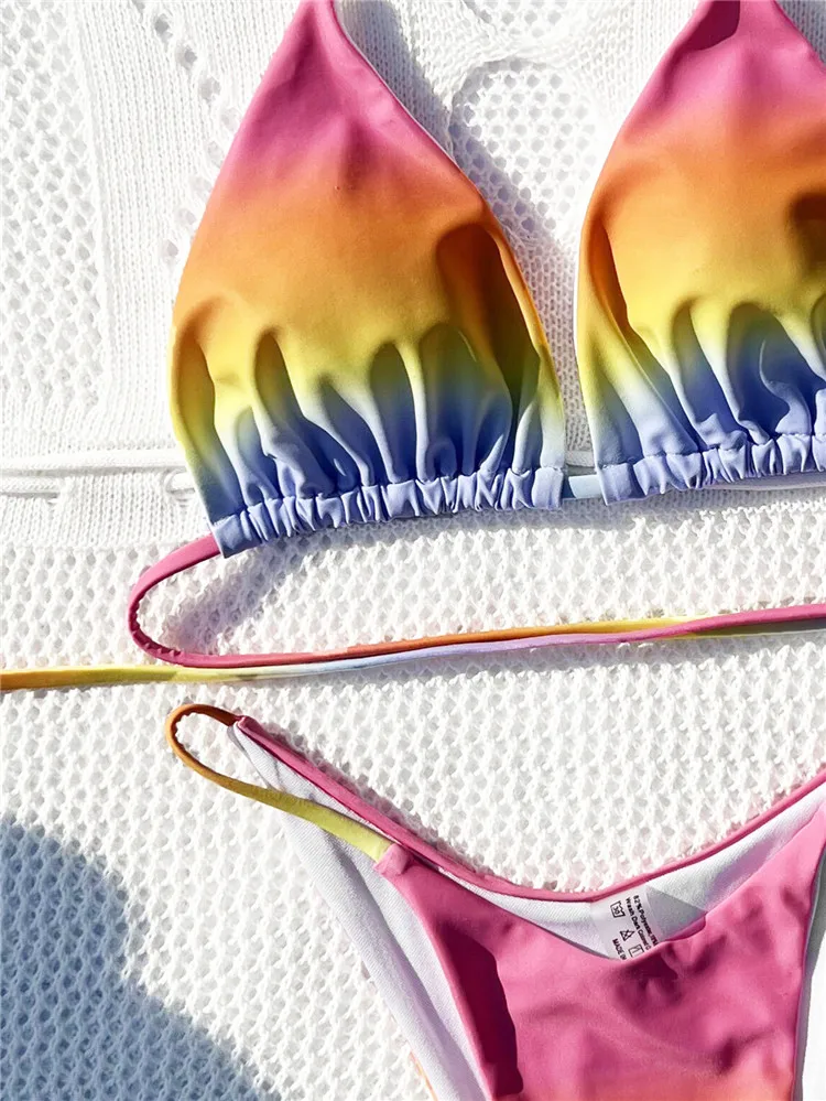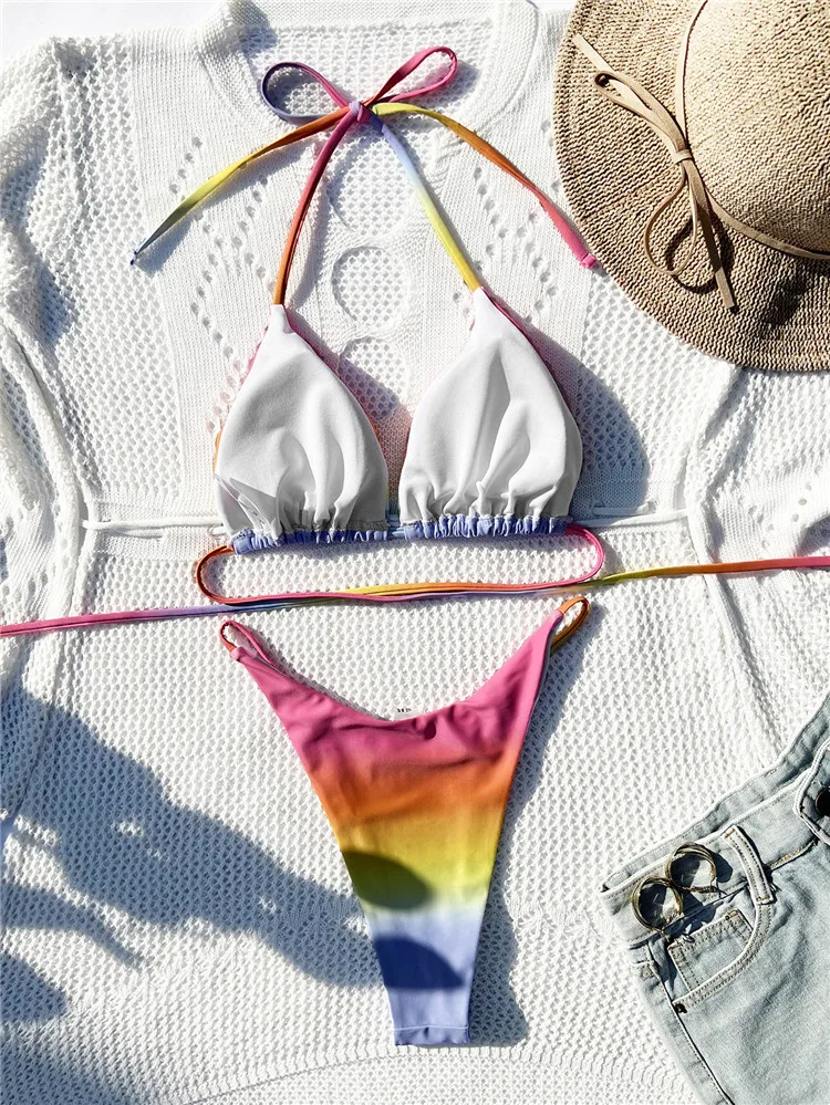 Custom Swing Tag 2023 Women Rainbow Colorful One Shoulder Bikini Set