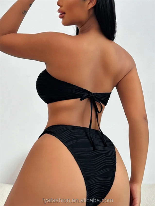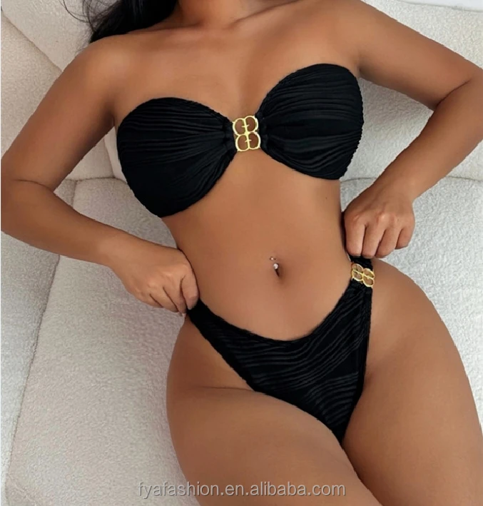 Custom Ribbed Metallic Bikini Tube Top Beachwear High Waist Bandeau Swimwear for Women 2026