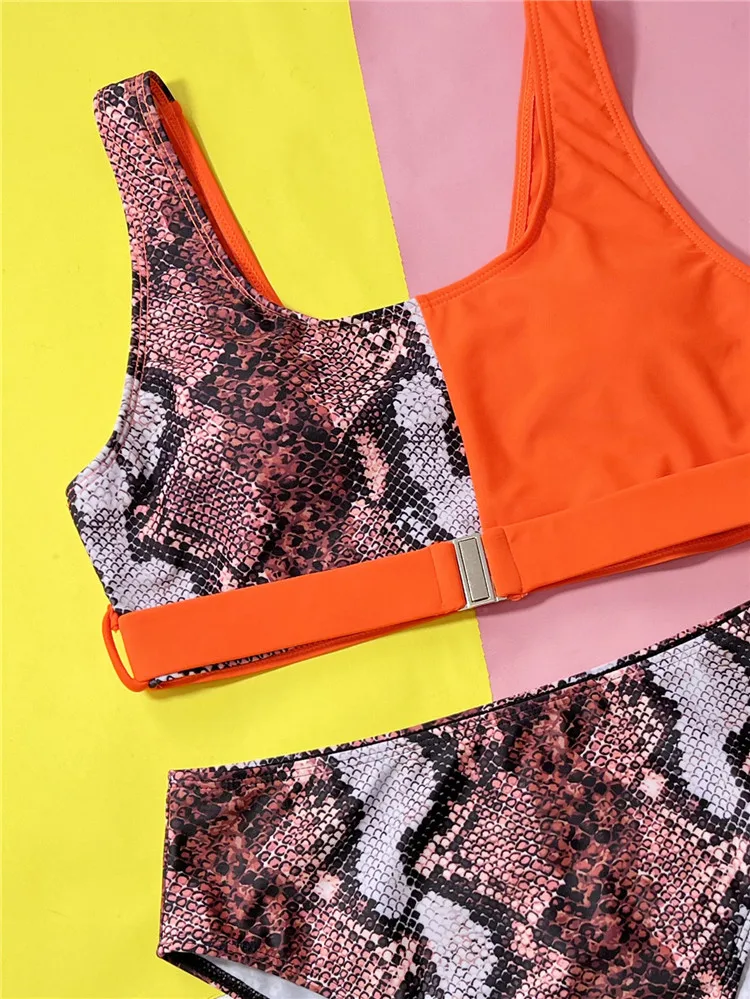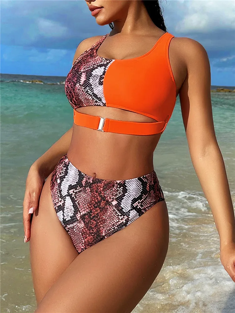 Custom Logo Splicing Halter Woman Sexi High Waist Bikini Set 2026