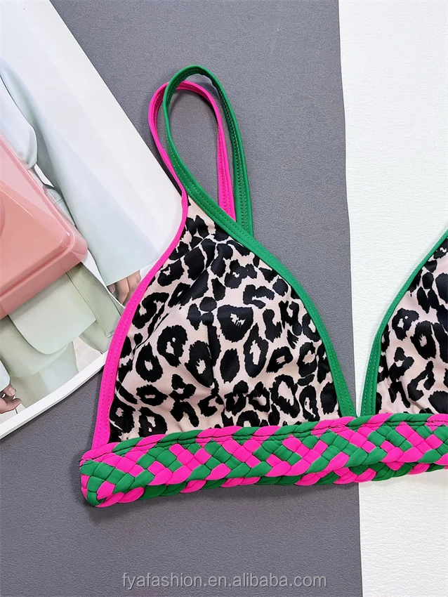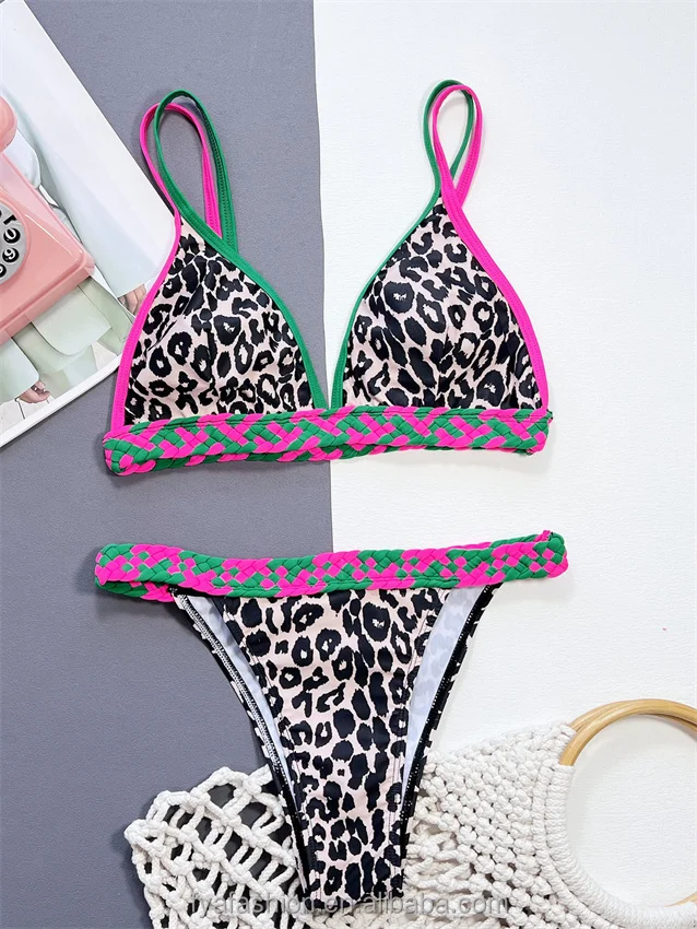Sexy Micro Brazilian Leopard Print Bikini Anime Girl Thong Open Weave Swimwear