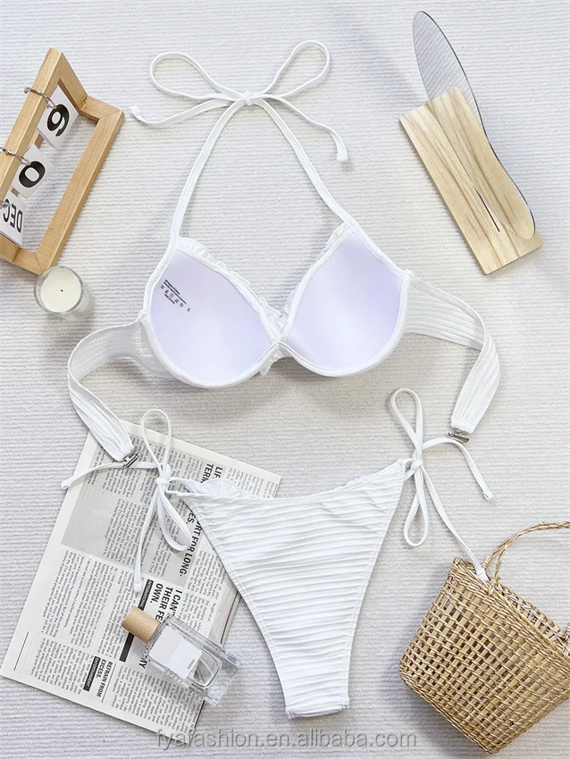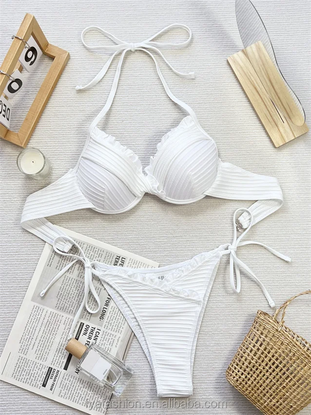 Best Girl Tube Top Brazil Sexy Ruffle Gather Thong Swimsuit Hot Ribbed Underwire Push up Micro Mini Bikini Set for Women