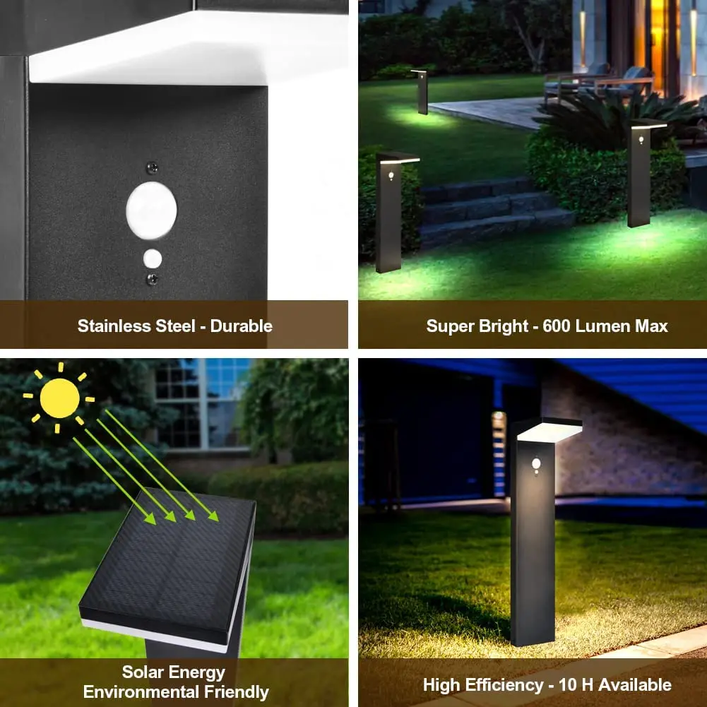Vertak Outdoor Landscape Path Lights for Garden Path Black Solar Led Path Light With 10m Detection Range