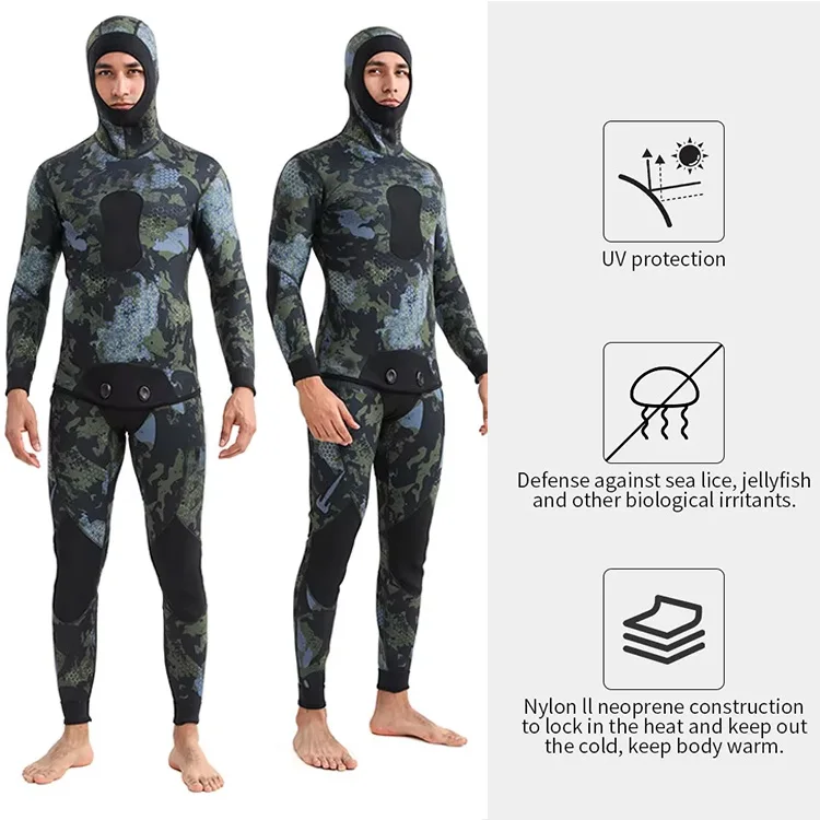 Opencell Two Piece 2 Pc Diving Suit Swimming Camo Custom Printed 3MM 5MM 7MM Diving Spearfishing Open Cell Wetsuit