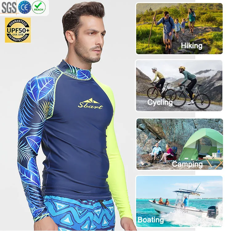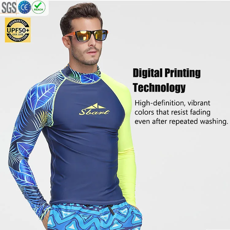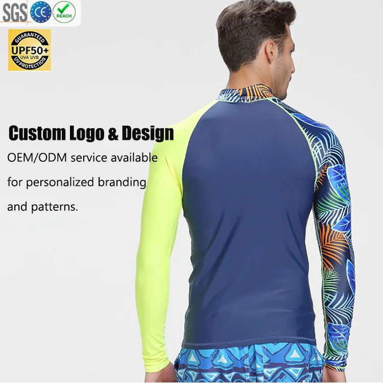 In Stock Digital Print Rash Guard Long Sleeve Swim Shirt UV Protection Quick Dry Breathable Surf Swimwear for Adults