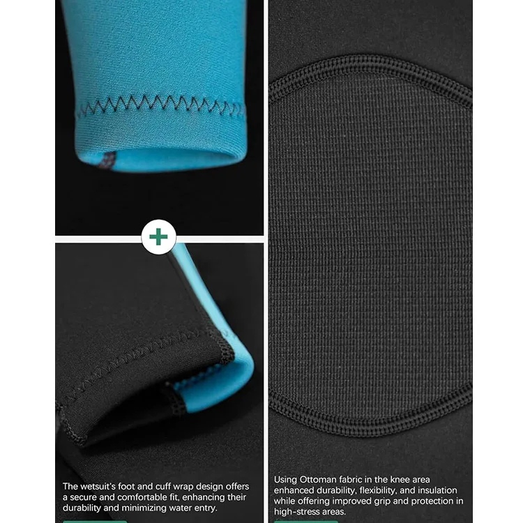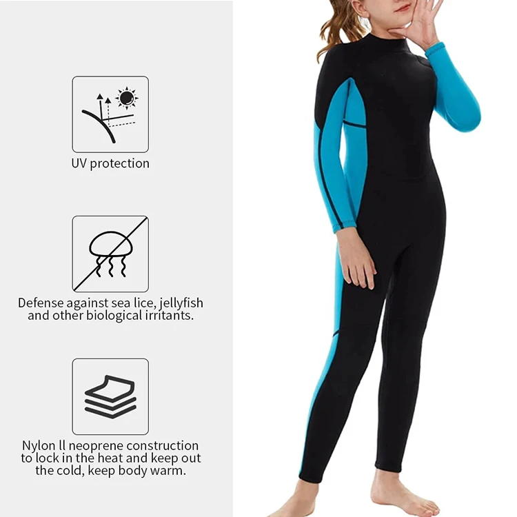 Stretchable Kids Neoprene Wetsuit 2mm Full Body Long Sleeve Back Zip Surfing Suit with Blue Stitching for Water Sports