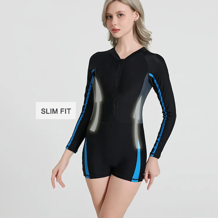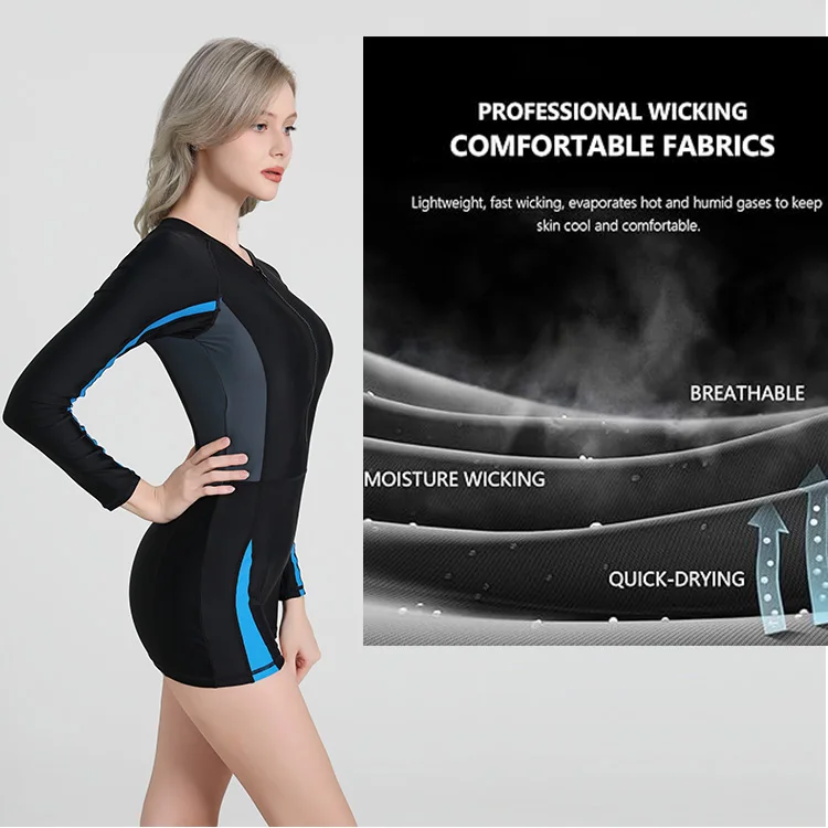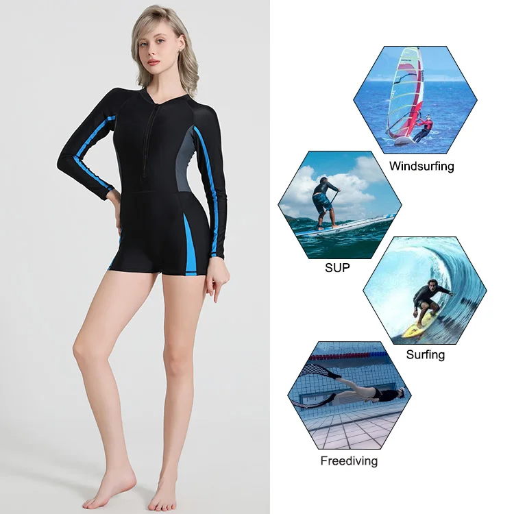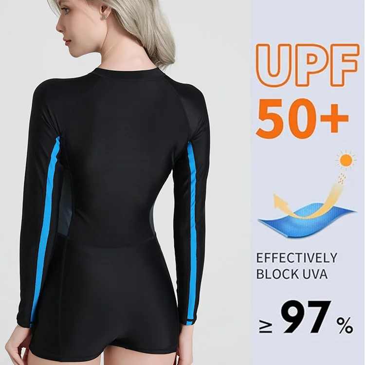 Women Long Sleeve One Piece Boyshort Swimsuit Quick Dry Breathable Full Coverage Modest Surf Swimwear UPF50+ Rash Guard