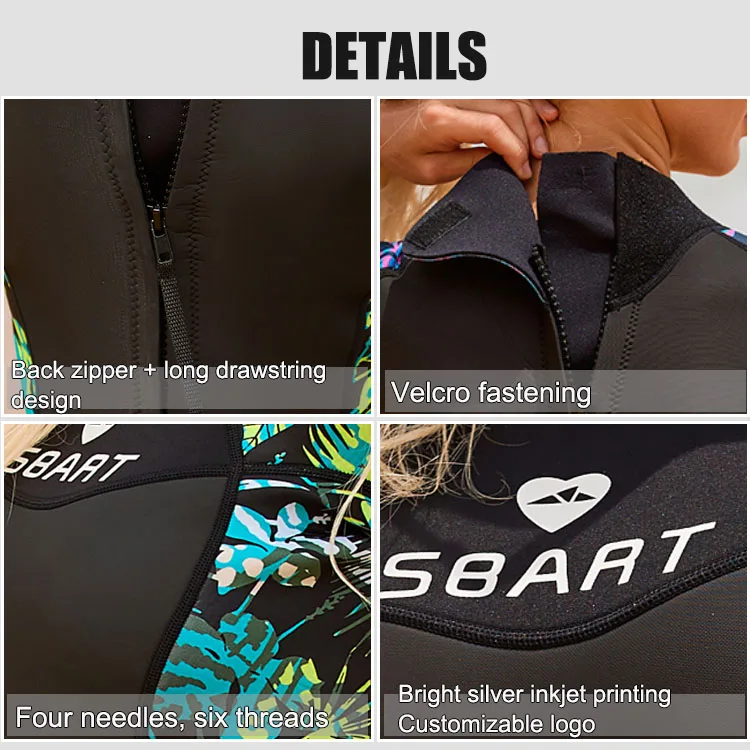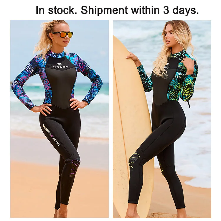 Women's Print Long Sleeve Wetsuit 3mm One Piece UV Sun Protection Diving Suit for Swimming Surfing Snorkeling