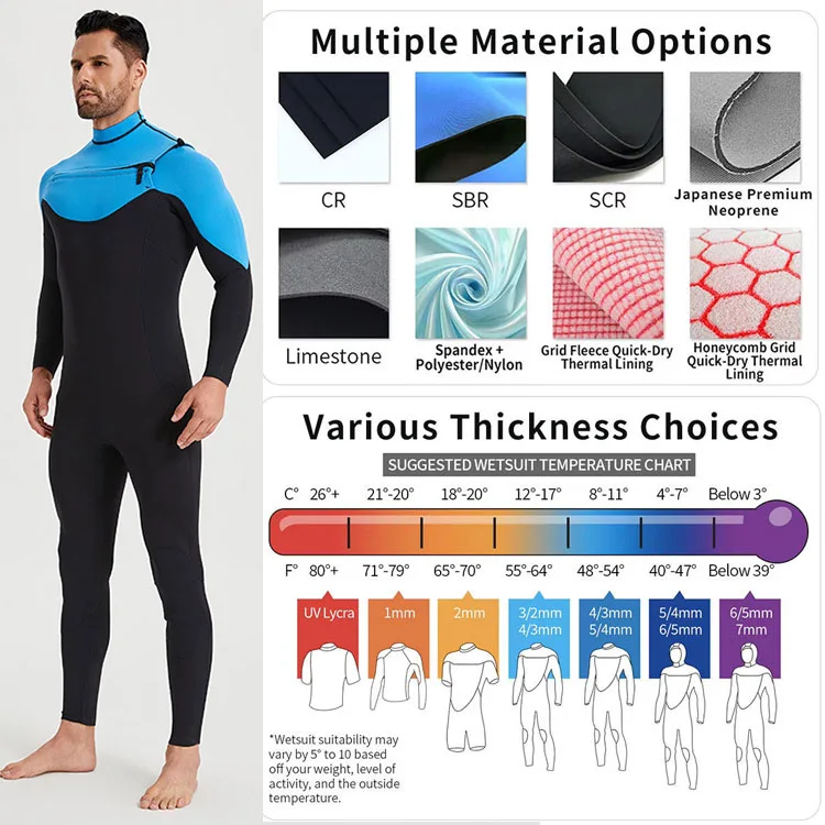 Custom Logo Men's 3/2 4/3Mm Chest Zip Wet Suit Neoprene Woman Man Zipless Snorkeling Surfing Wetsuit
