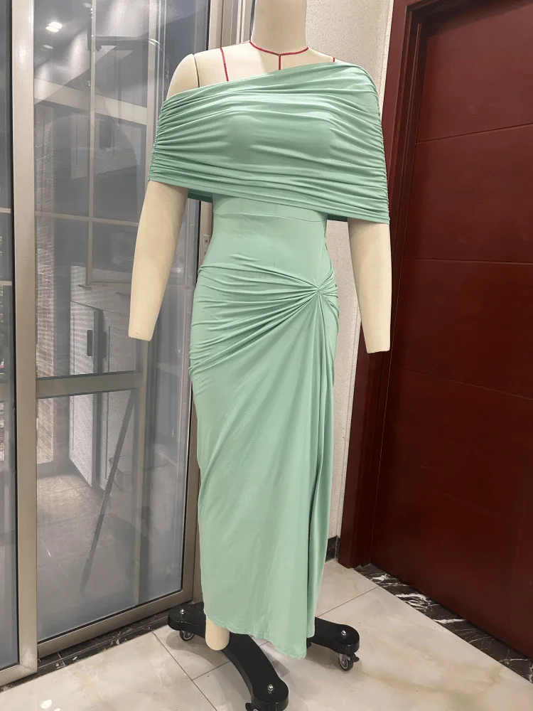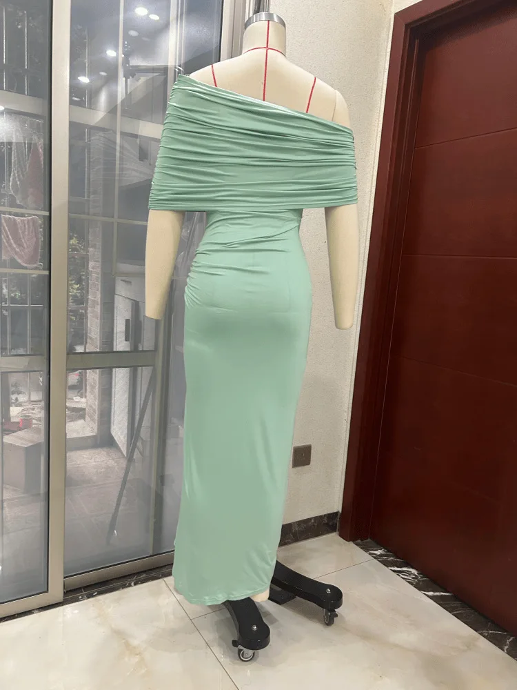 STOCK Off Shoulder Women Dress Pleated Maxi Dress Slim Fit Party Evening Vestidos Robe S-XL
