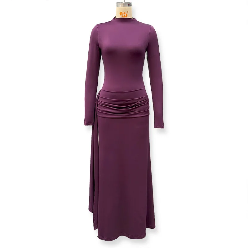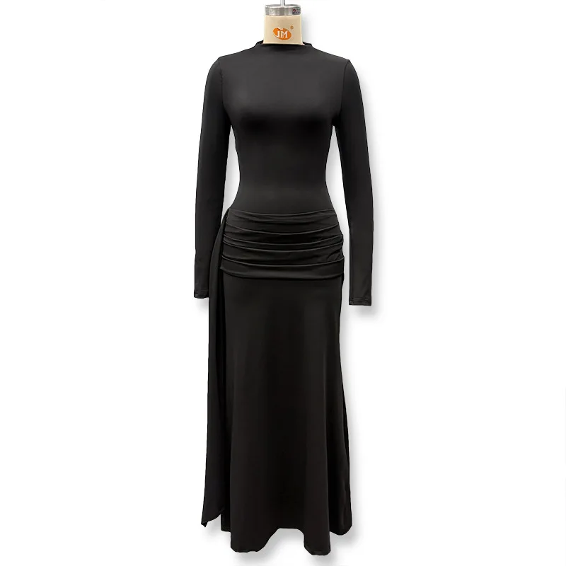 STOCK 3Colors Long Sleeve Women Vestidos Slim Fit Maxi Dress Evening Gown S-L