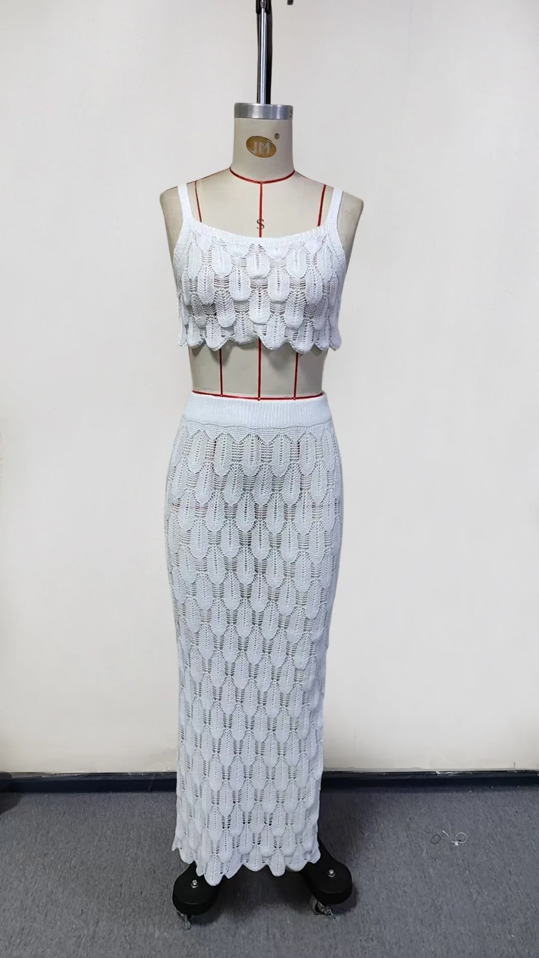 STOCK Plain Women Bandeau Bikini Top and Skirt Set Knitted Crochet Beachwear Cover Ups S-L