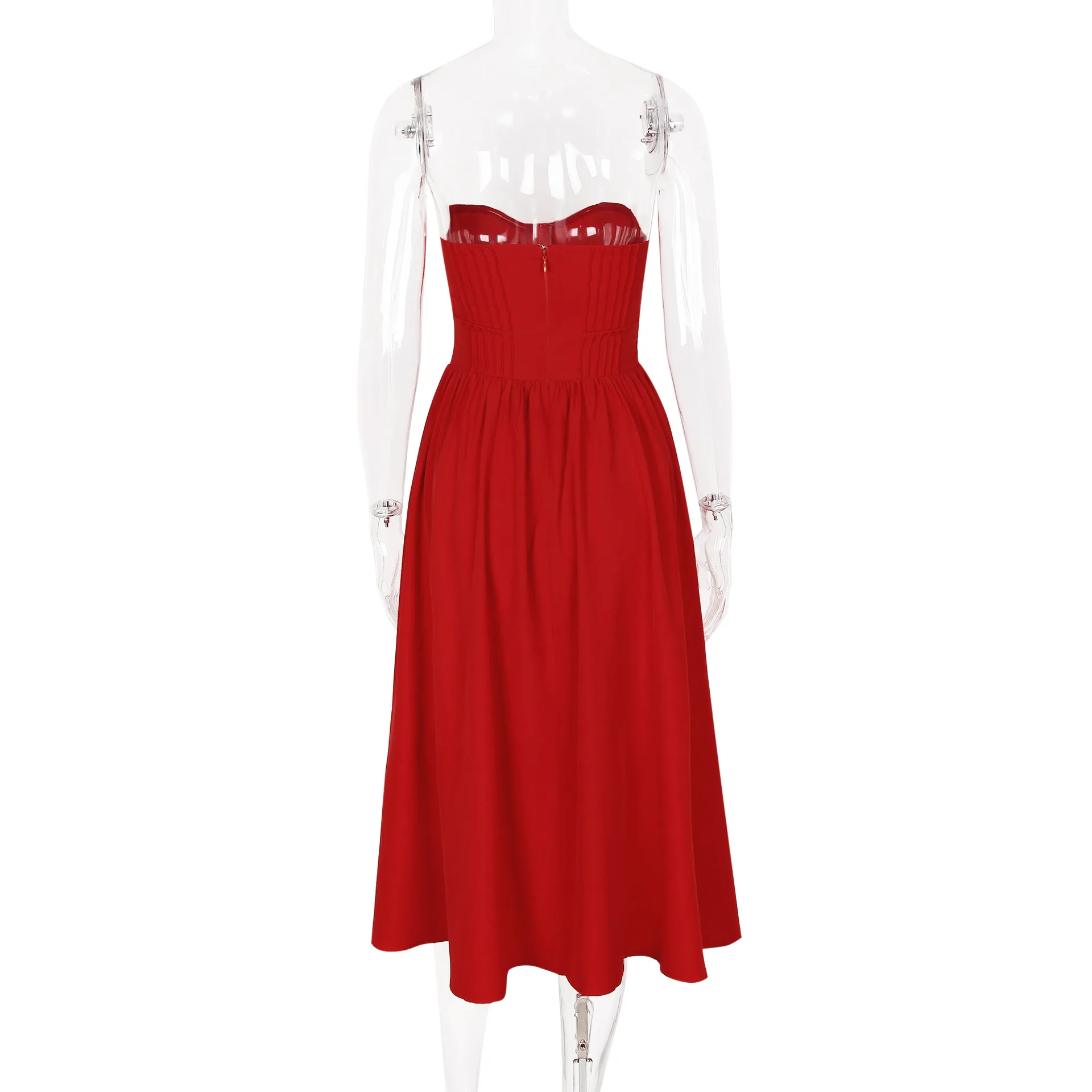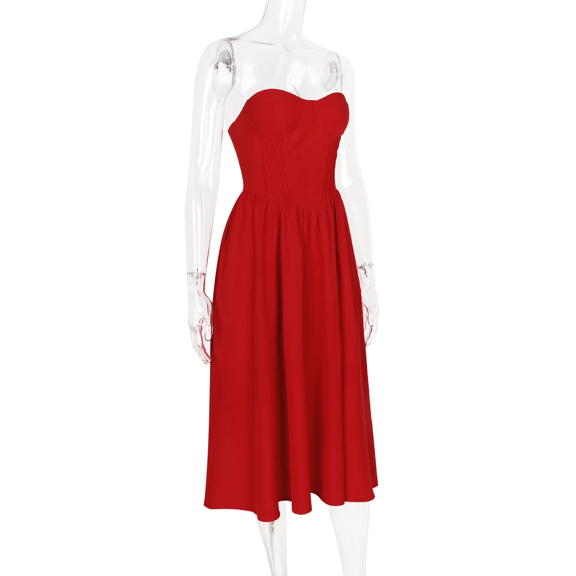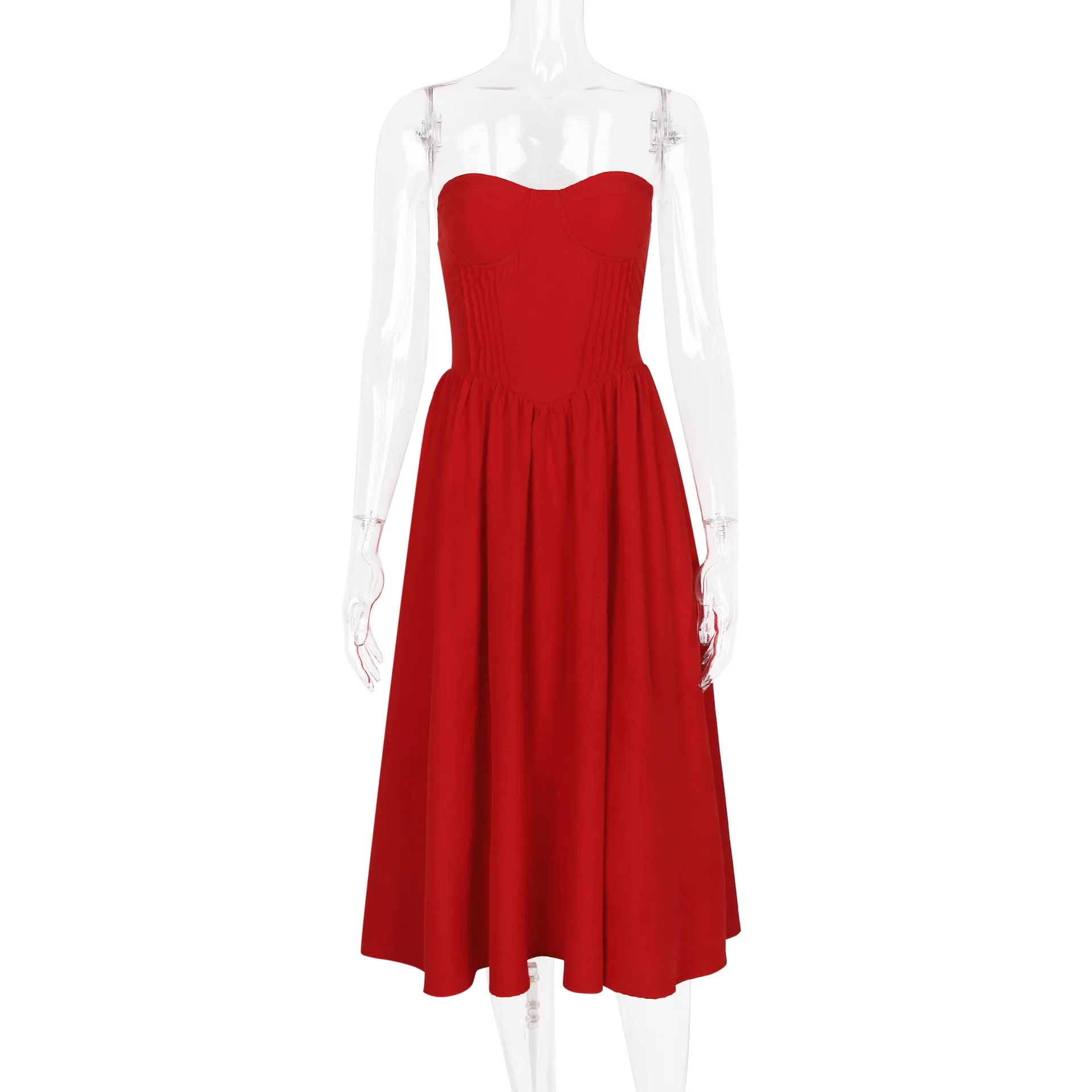 STOCK Plain Strapless Women Dress Zipper Back Underwire Midi Prom Evening Dress XS-L