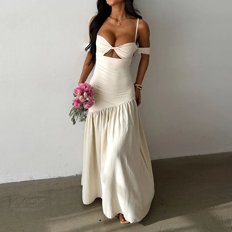 STOCK Bandeau Top Off Shoulder Women Dress Flare Maxi Dress Beach Gown XS-L