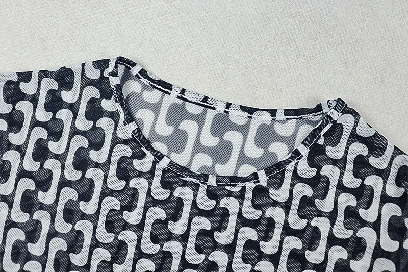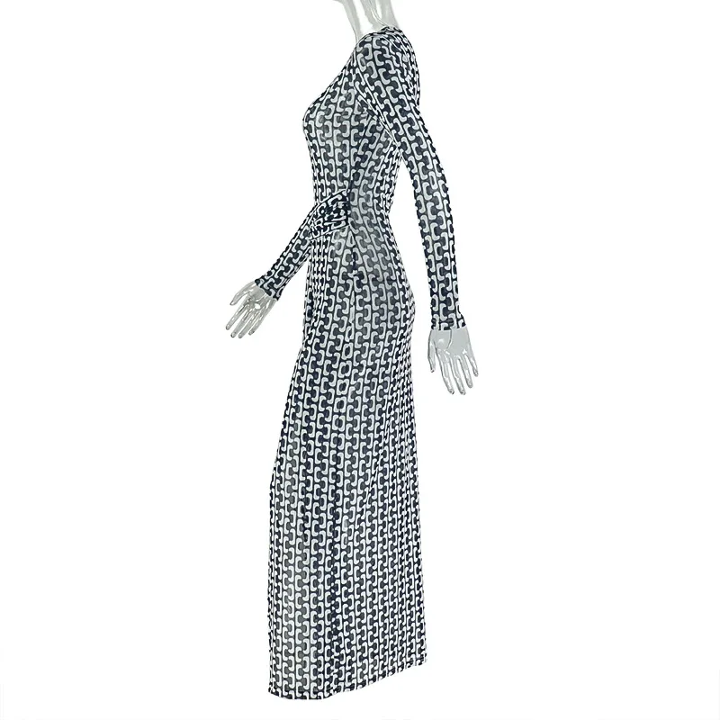 STOCK Print Mesh Women Dress See Through Maxi Dress Slit Swimwear Cover Ups Beachwear S-L