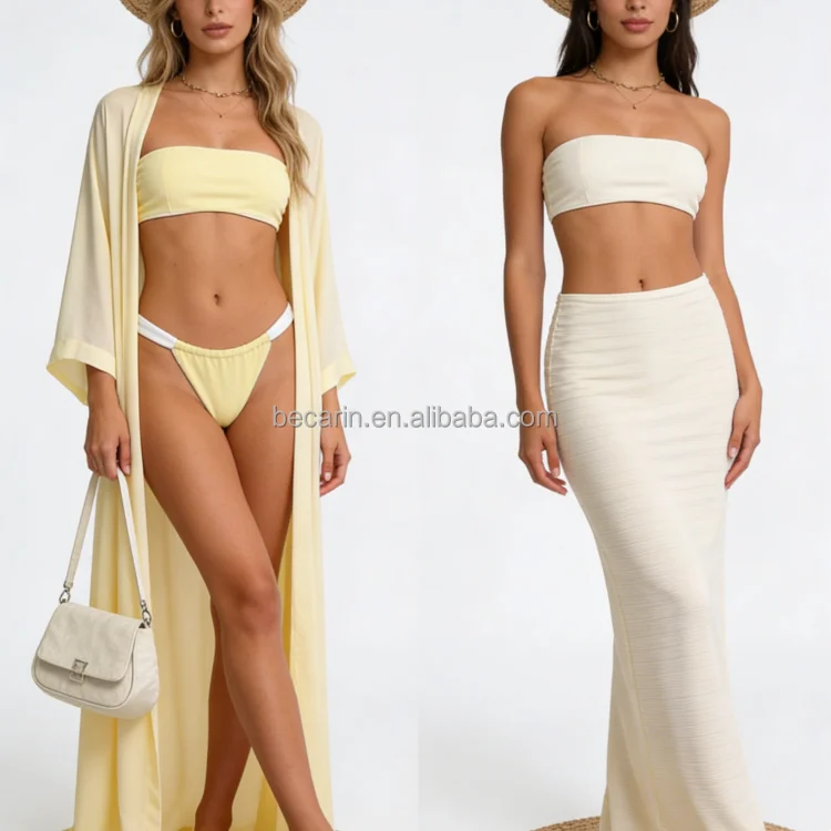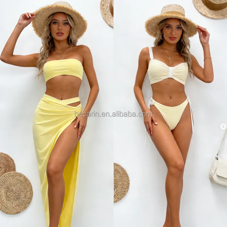 OEM Custom Made Ladies Sexy Reversible Bikinis Solid Seamless Brazilian Swimwear Beachwear Micro Three Pieces Sets Women's Swim