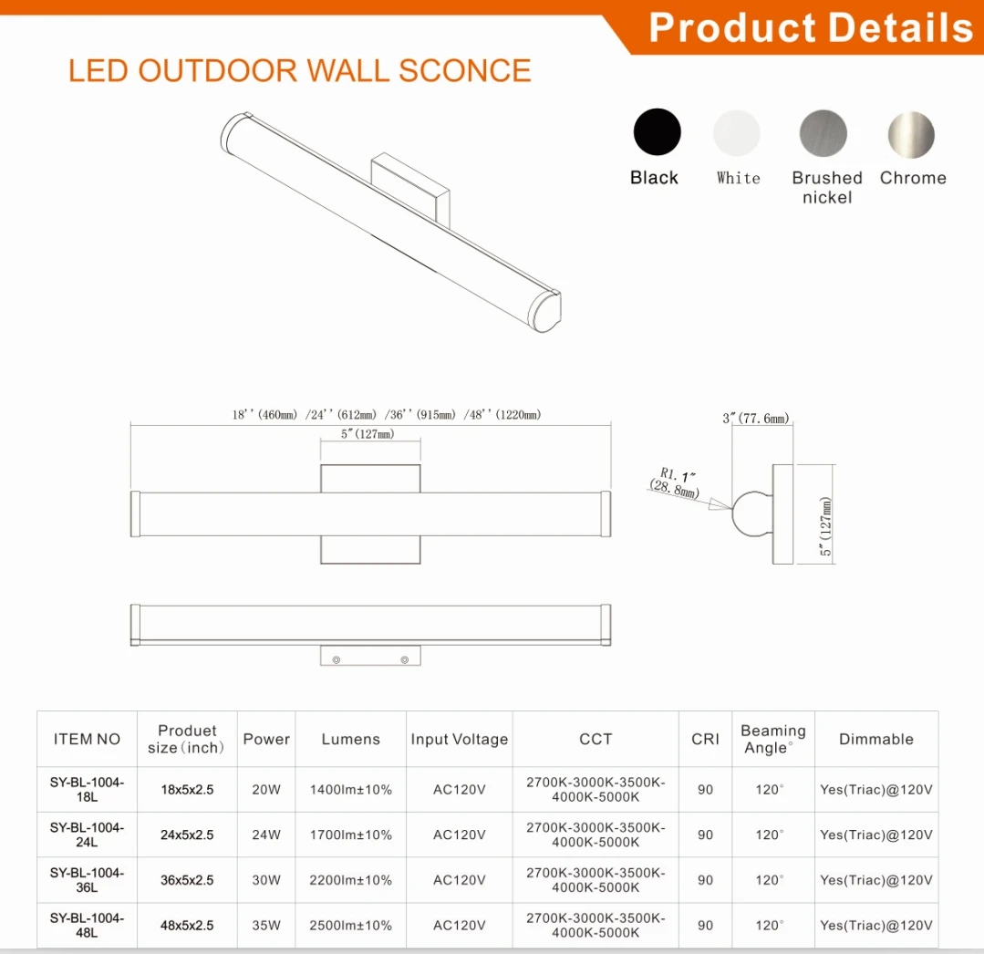 Vanity Lights Modern Bathroom Vanity LED Decorative Light Bar Rectangular Wall Mount Hotel Vanity Mirror Light 5CCT 120V