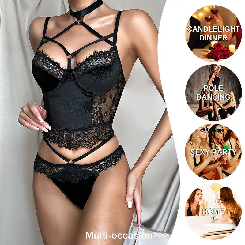 Hot Women's ODM Black Nero Lace Mesh Sex Bandage Bra See Through Underwear Panties Set Sexy Woman's Lingerie