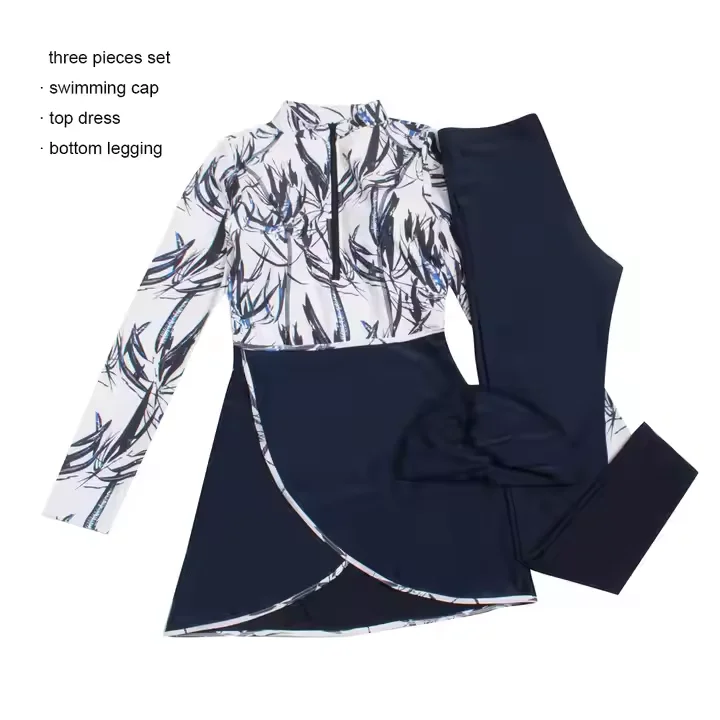 Fashion Long Sleeve Three-piece Set Islamic Women's Modest Swimwear Pants Spandex/Polyester Quick Dry Breathable Beach Swimming