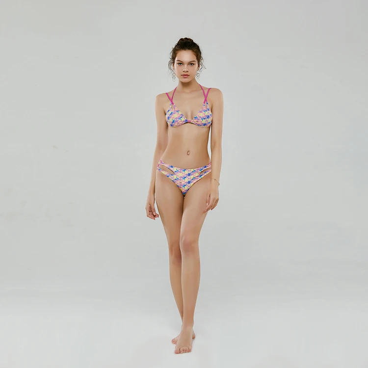 MLY Ruffle Bikini Summer Two Piece Suit Sexy Swimwear Bandage Biquini Triangle Swimsuit Printed Bathsuit
