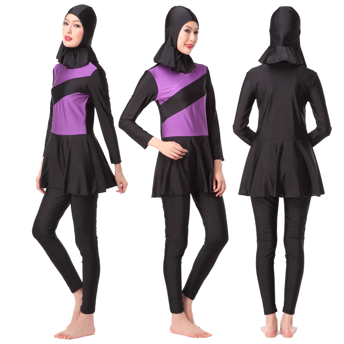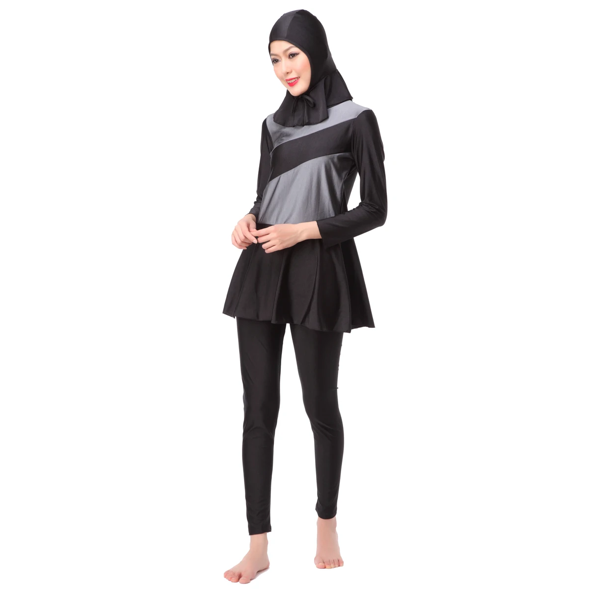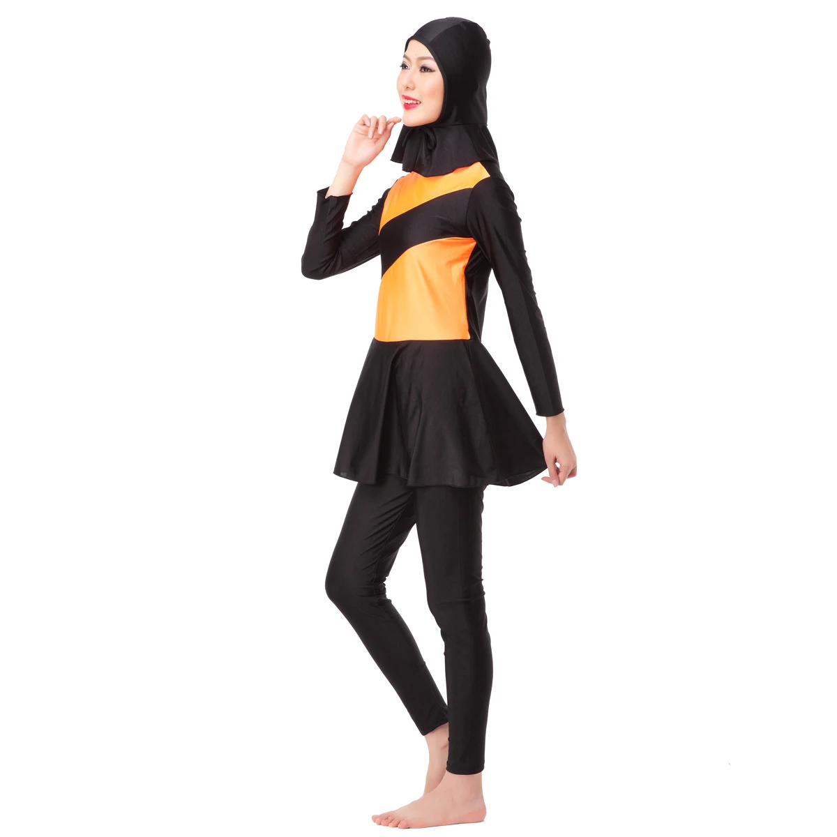Wholesale Plus Size 3 Set Burkinis Girls Breathable Striped Muslim Swimwear Pants Long Sleeves Sportswear Beach Clothing Islam