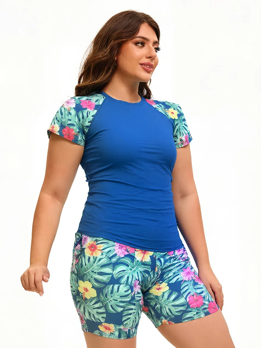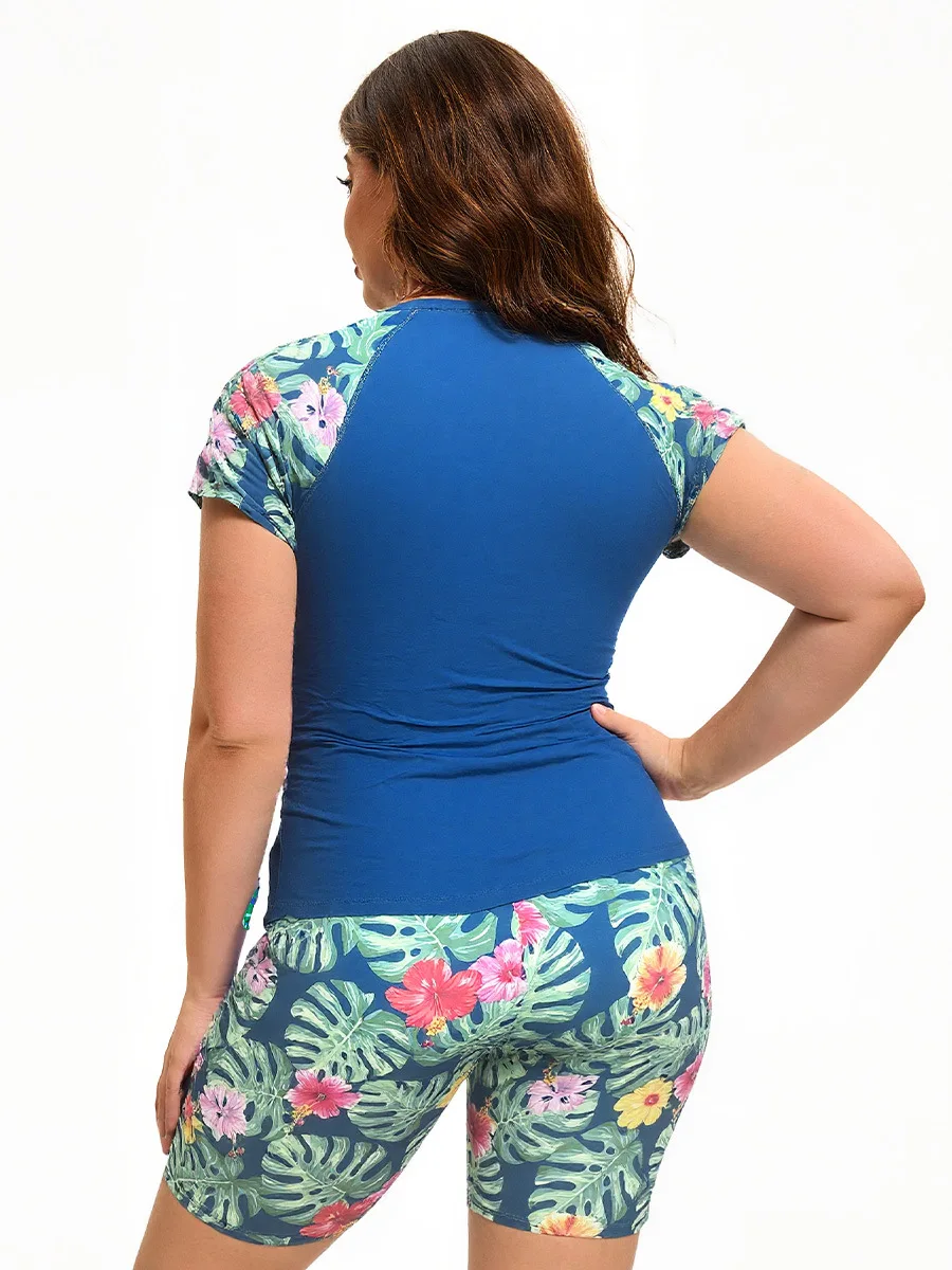 New Women's Plus Size 2-Piece Breathable Short-Sleeve Triangle Bikini Set with Front Logo (Spandex/Polyester) Solid Beach Wear