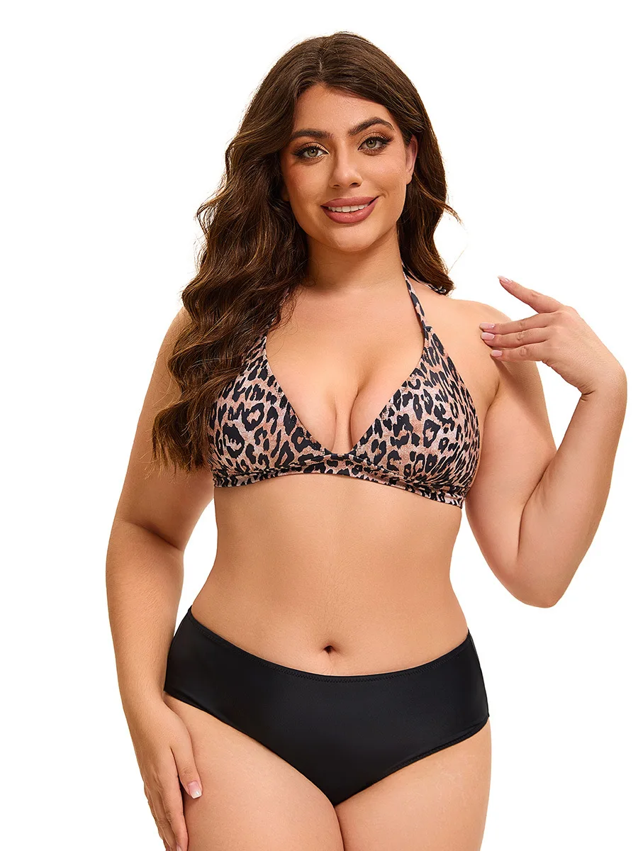 Cross-border Mesh Three-piece Large Size Women's Sexy One-Shoulder Bikini Swimsuit with Hollow Out Waist Logo Spandex/Polyester