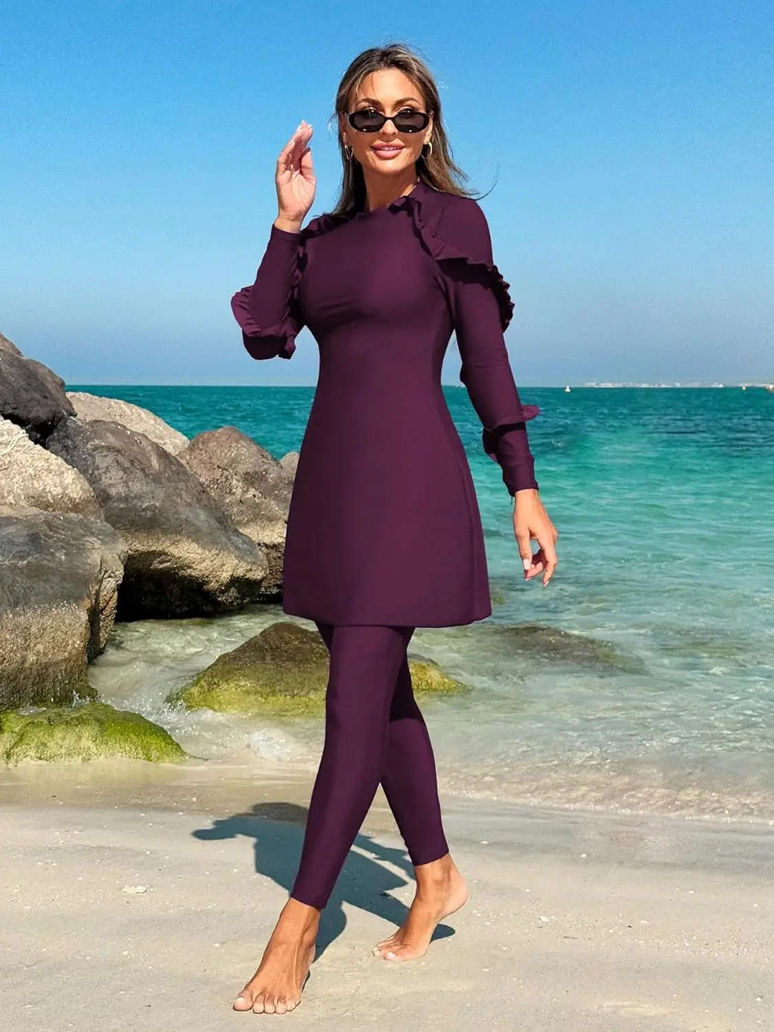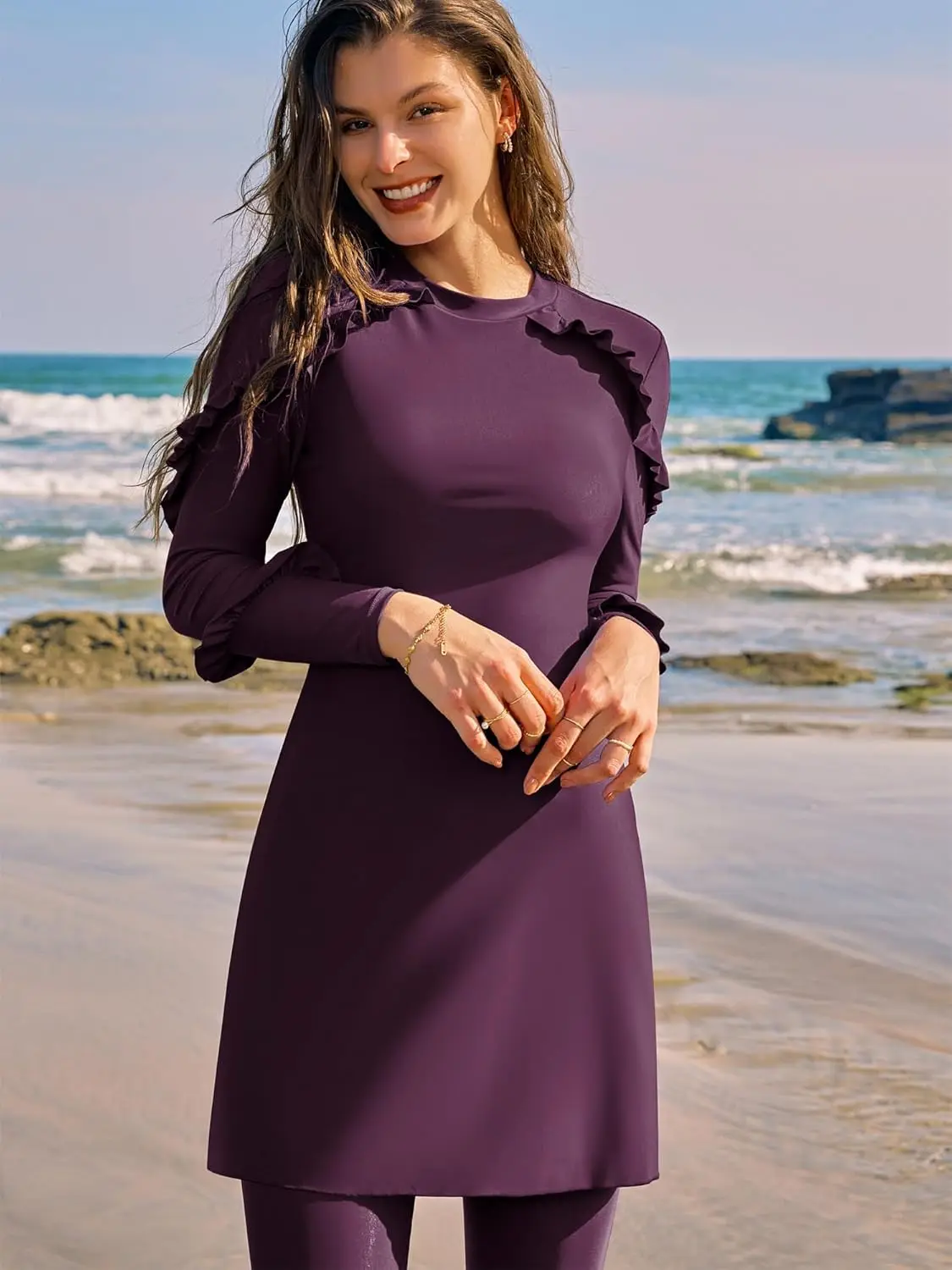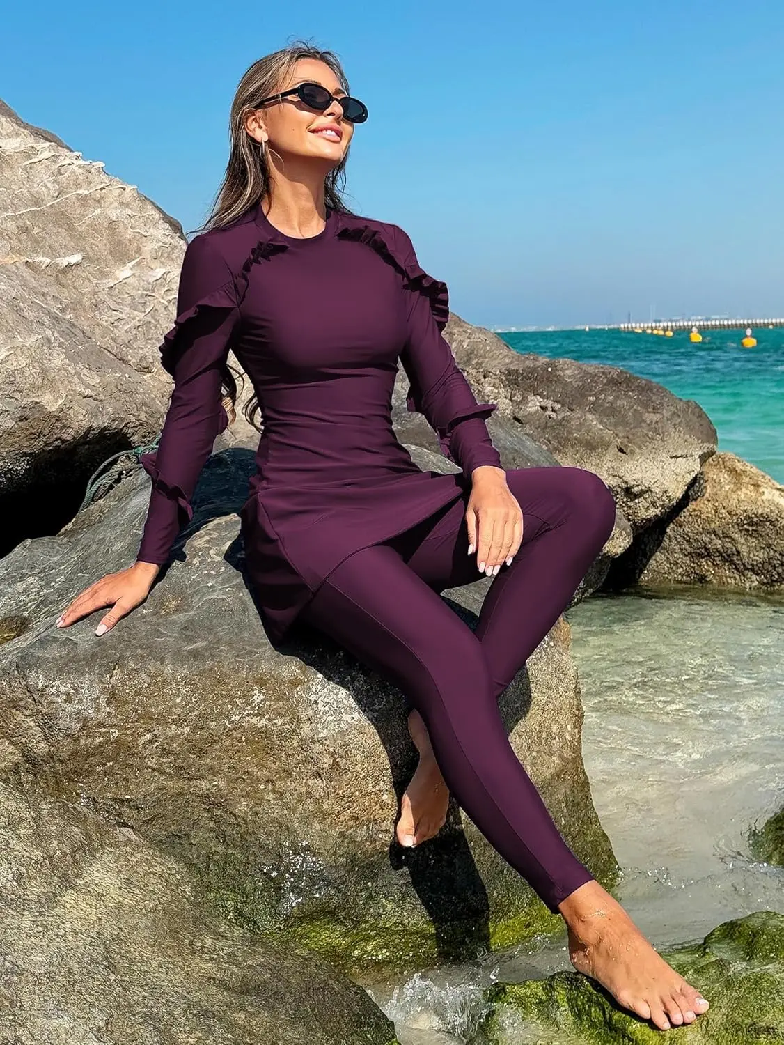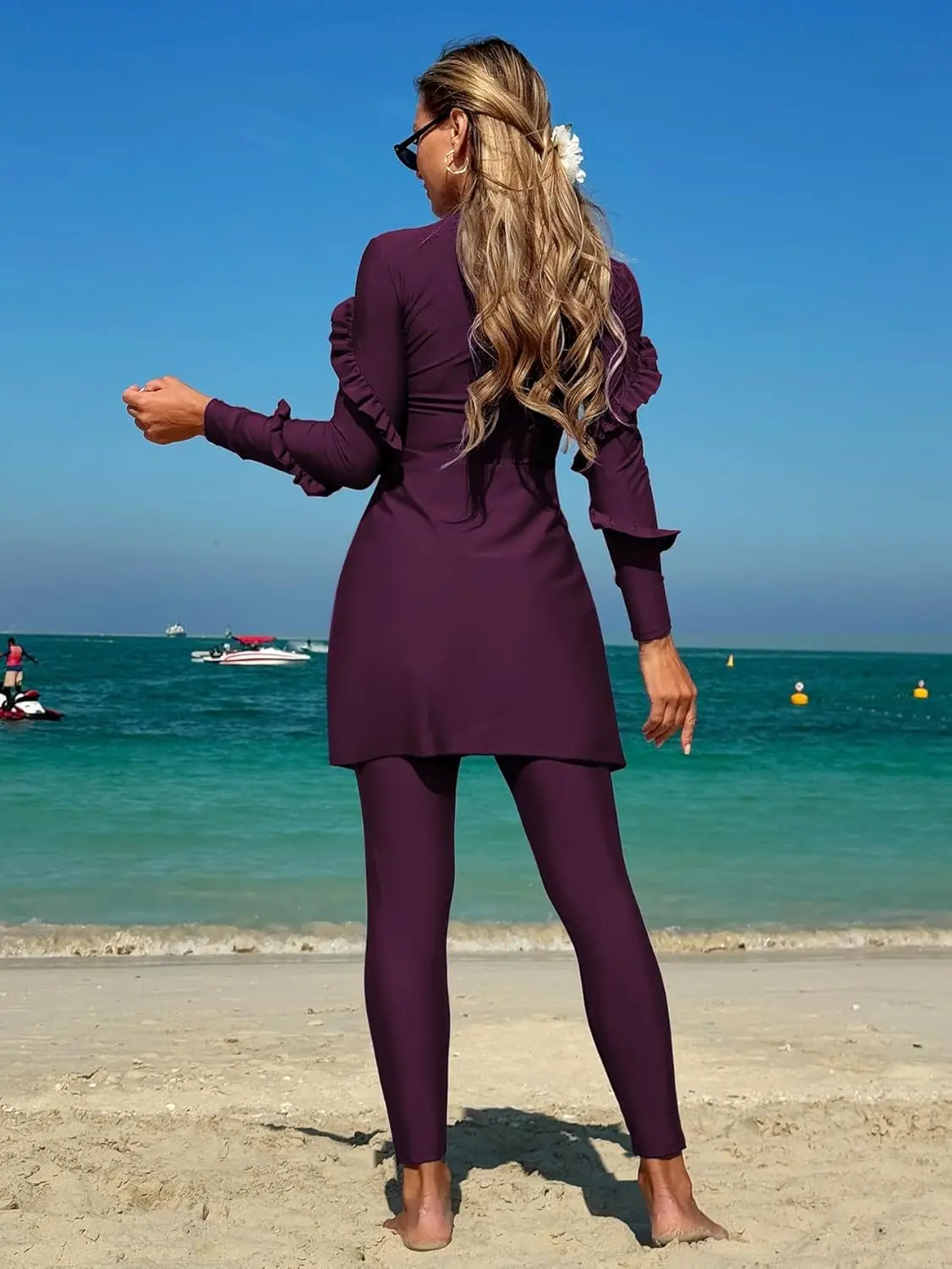 For Women Modest Muslim Two-piece Full Coverage Ruffle Islamic Arabic Burkini Swimsuit Spandex/Polyester