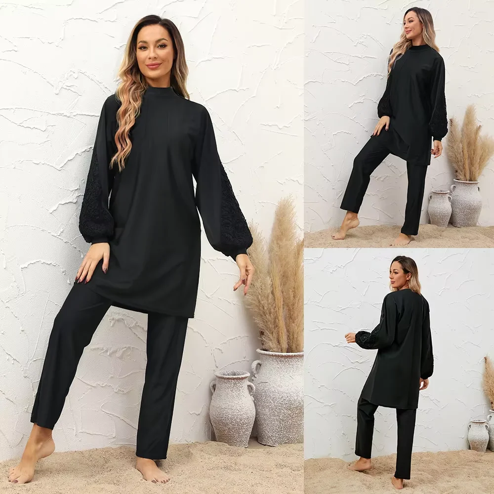 2026 Ladies Muslim Women Plus Size 3 Piece Set Swimwear Cover up with Pants Spandex/Polyester