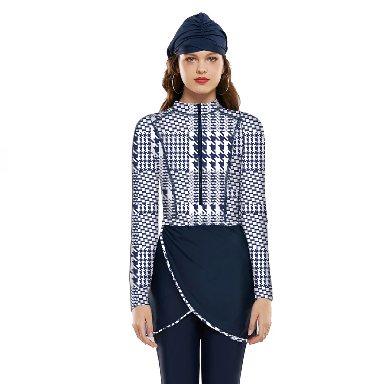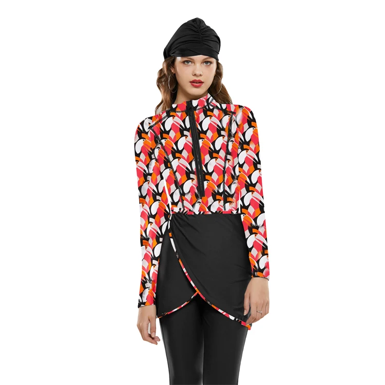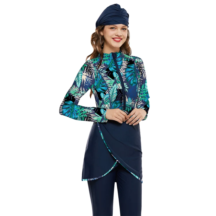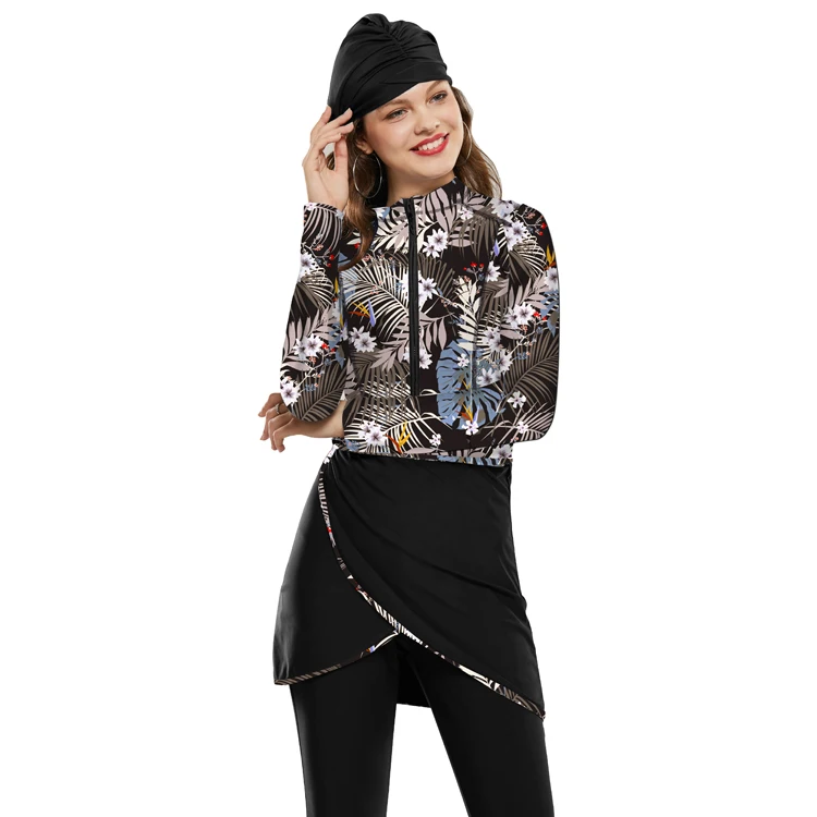 LaFata 2026 Islamic Muslim Women Modest Long Sleeves Swimwear 3-Piece Set with Bra Padding Print Pants